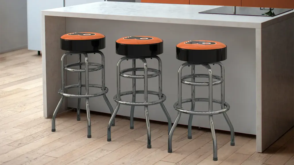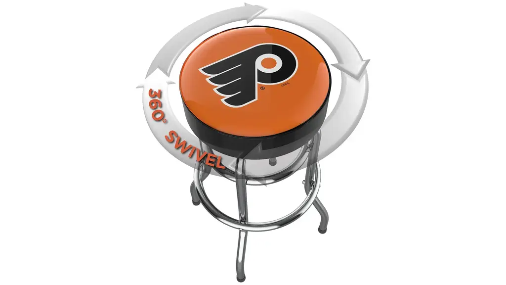 NHL Backless Swivel Bar Stool features a sturdy steel frame and 360 degrees swivel seats. The vinyl seat is easy to clean and includes your favorite team logo that is sure to never scratch off.