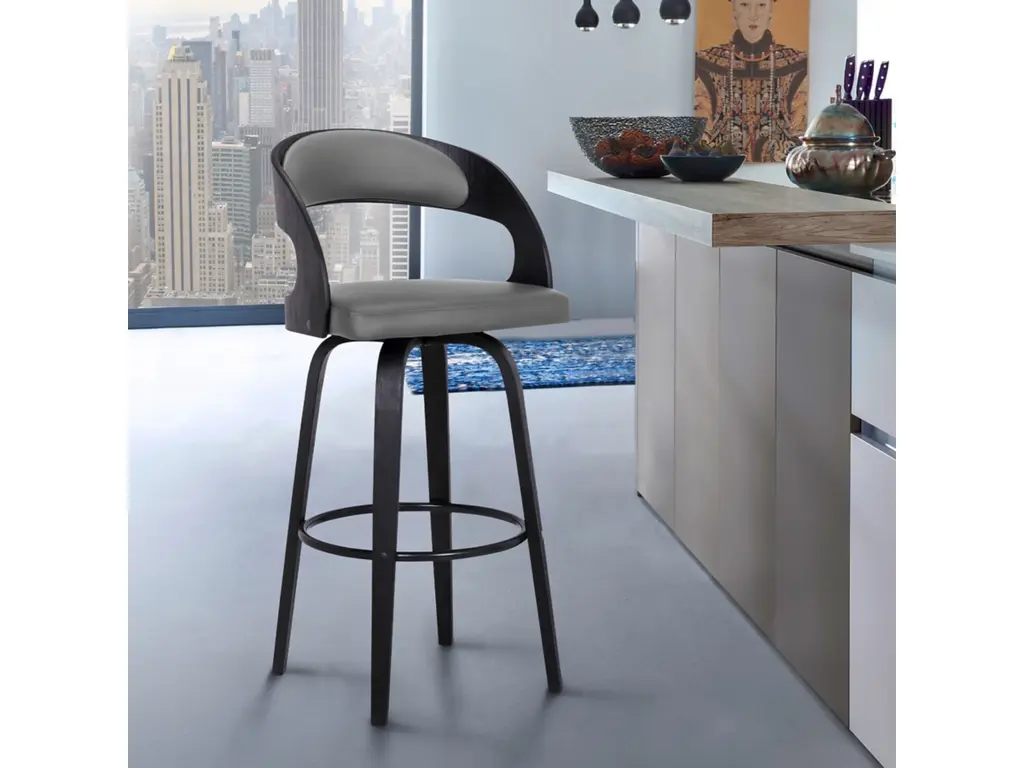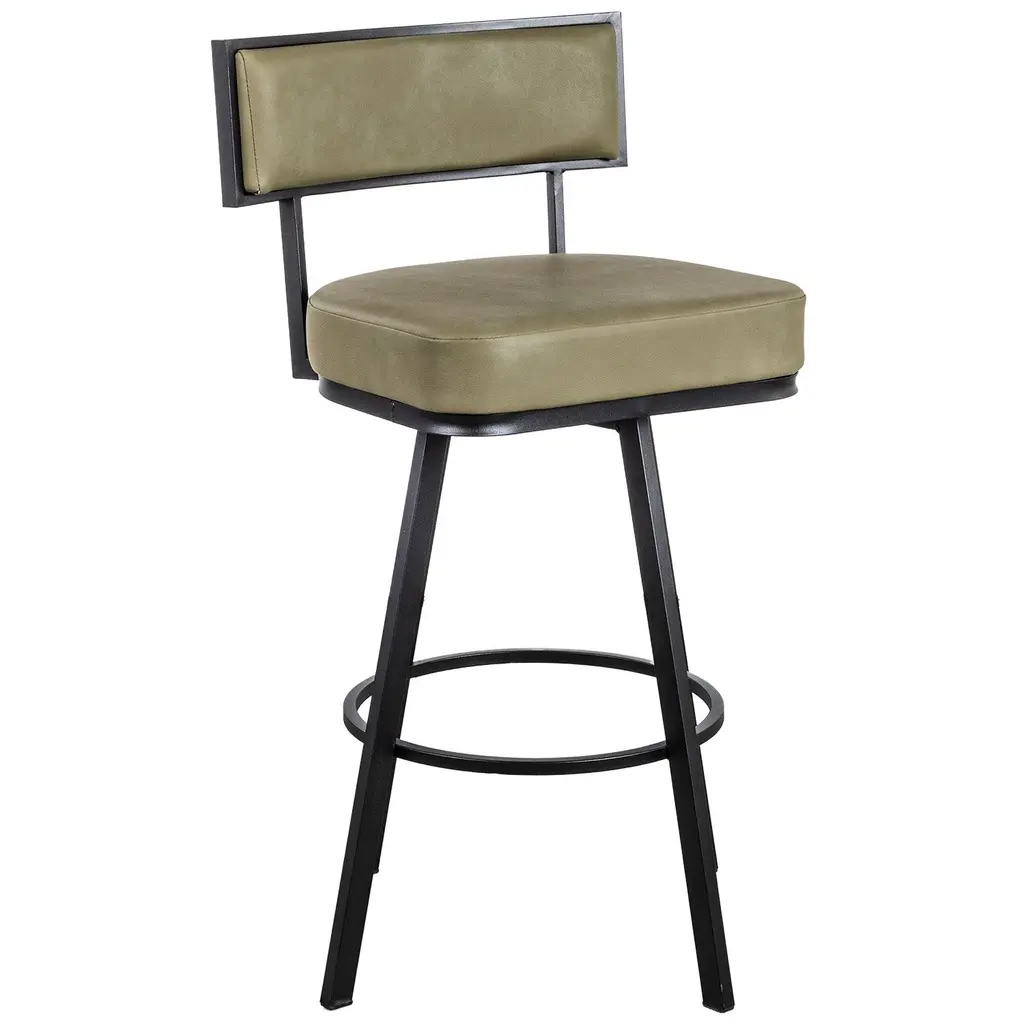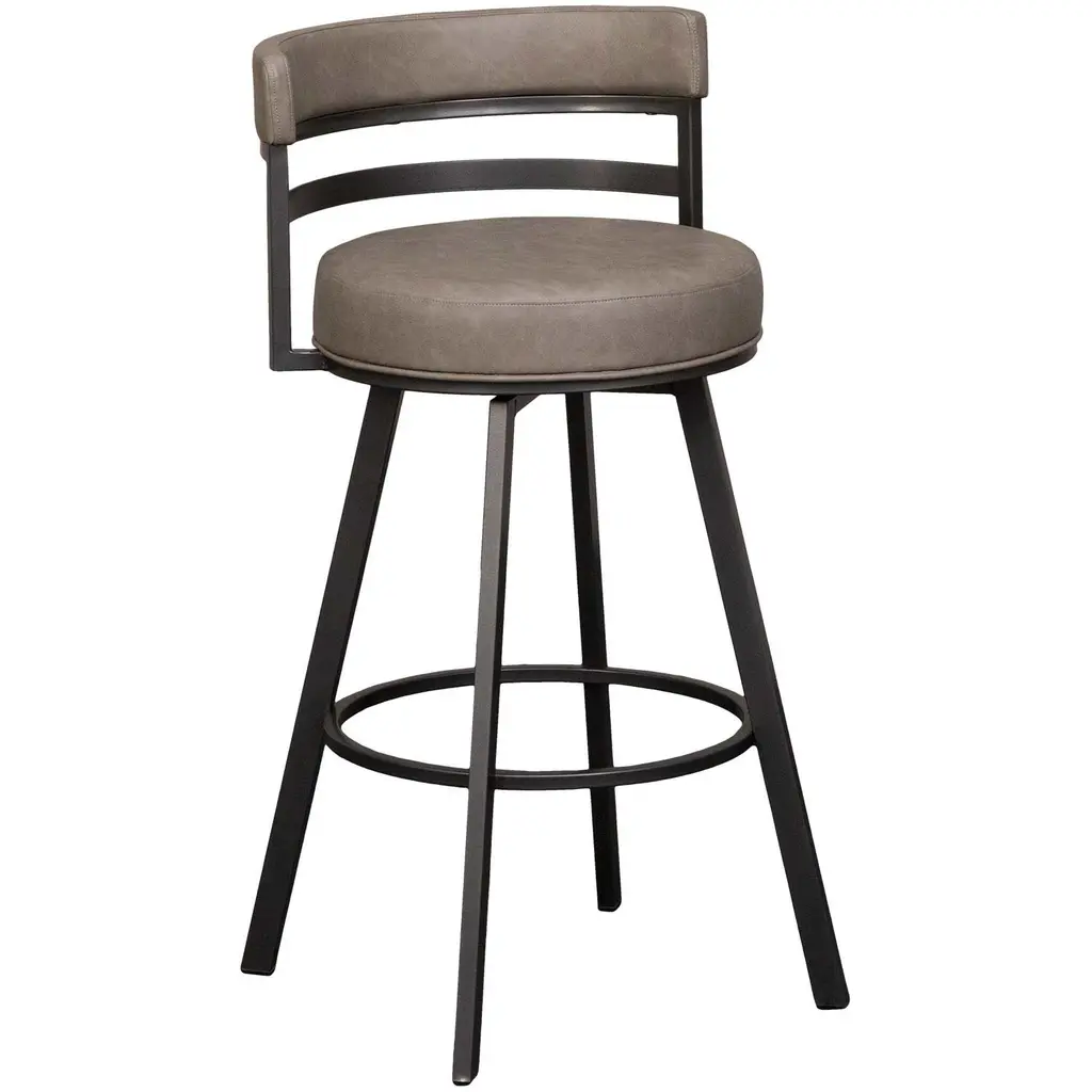 Revitalize any space with the sleek and inviting charm of the Orcone black counter height stool. The refined profile and sleek curves offer instant appeal and comfort. With a floating back and curved arms, this stool is ready to make a chic statement. Its hugging back and round seat are covered in easy-to-maintain faux leather to offer lasting style and comfort. The slim arms flow seamlessly into the small but comfy backrest. It lends a dynamic seating solution for your kitchen island, pub table, home bar, or adjustable desk. The built-in, circular footrest relieves pressure on your legs and back to offer a more comfortable seating experience. This stool includes a smooth, 360-degree swivel function, which allows you to turn and change directions with ease to promote smooth-flowing conversations in any arrangement. Customer assembly is required.