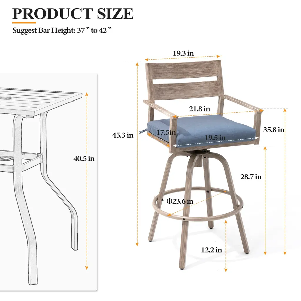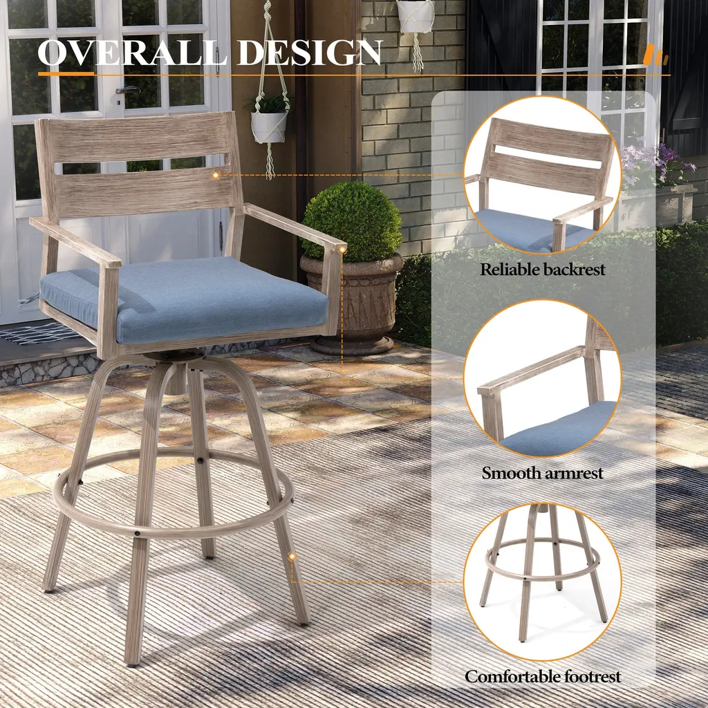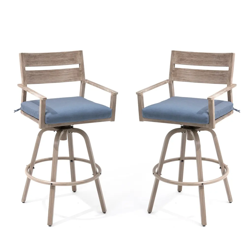 Outdoor Aluminum Swivel Patio Bar Stools With Sunbrella Fabric Cushion - Spectrum Denim Cushion, 2Pcs