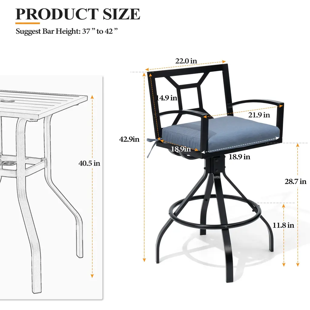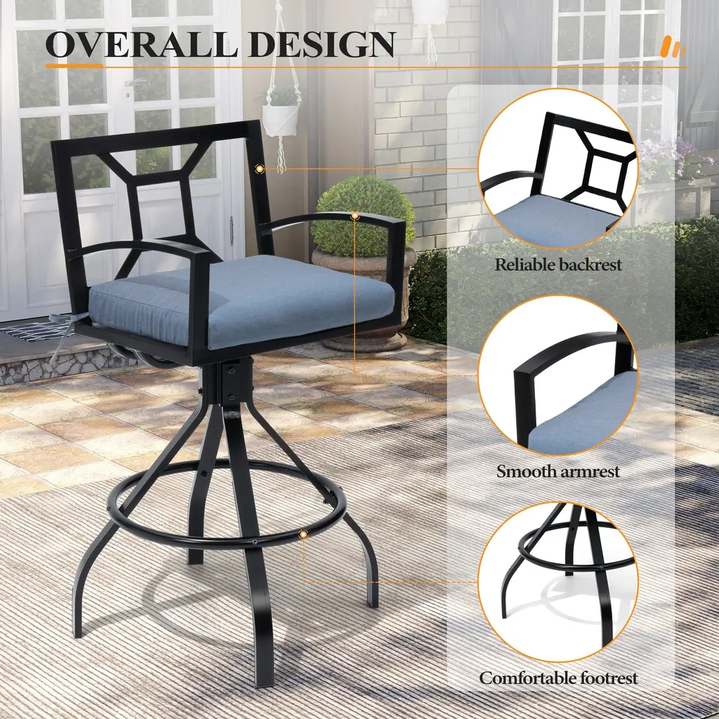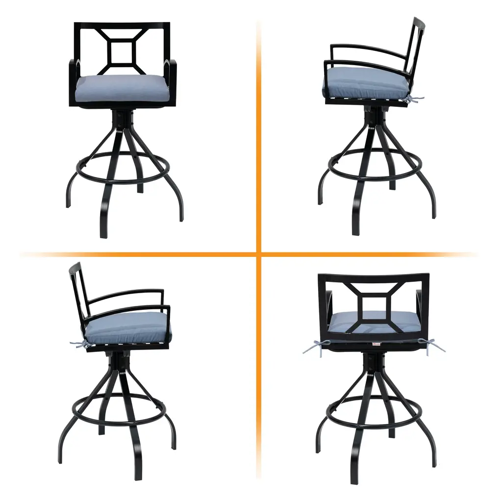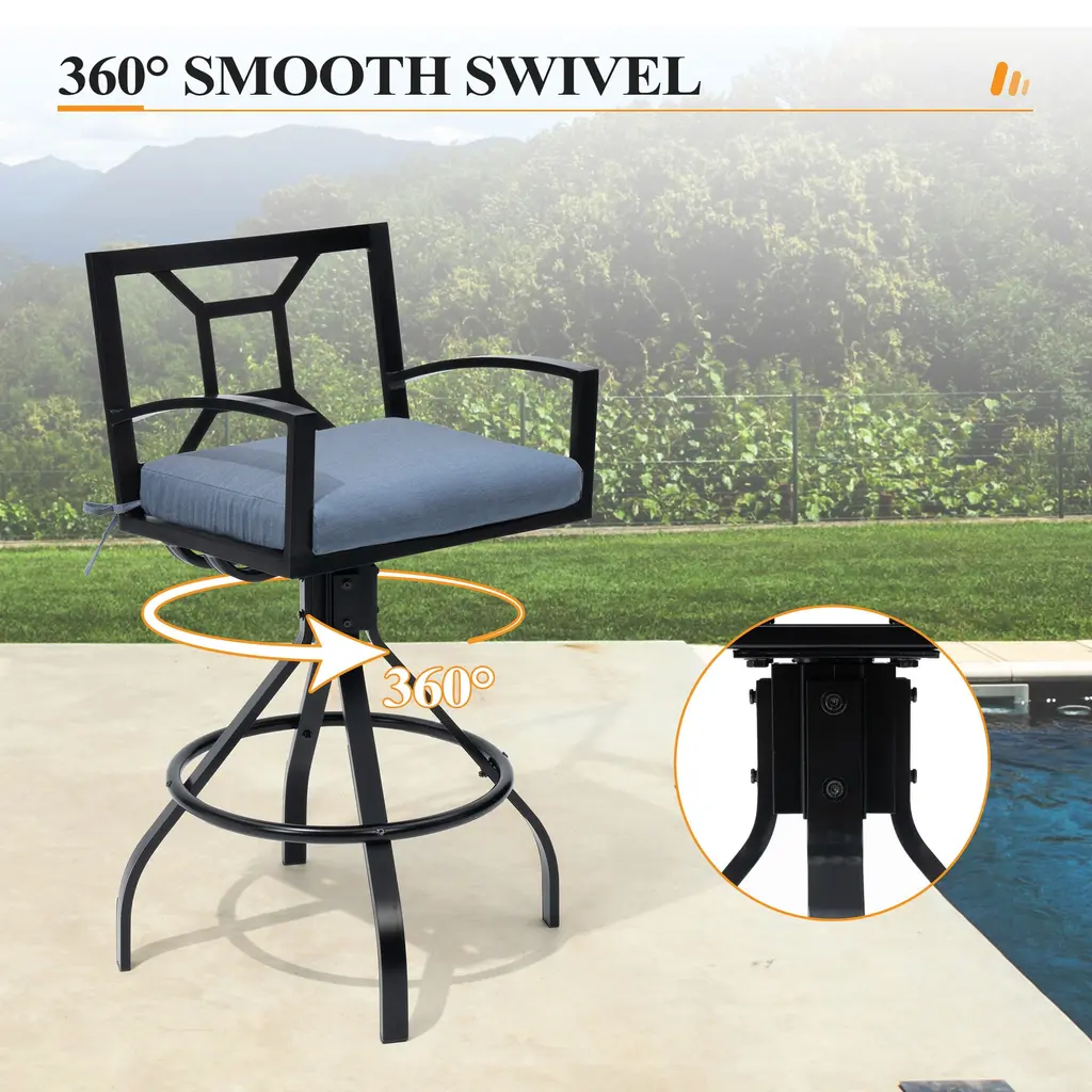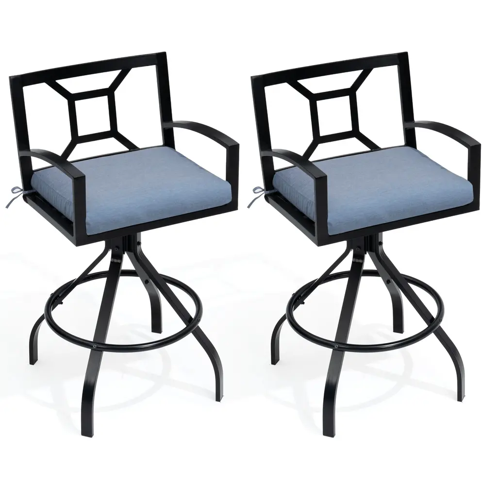 Outdoor Patio Barstool Swivel Aluminum Bar Stools With Sunbrella Fabric Cushion - Spectrum Denim Cushion, 2Pcs