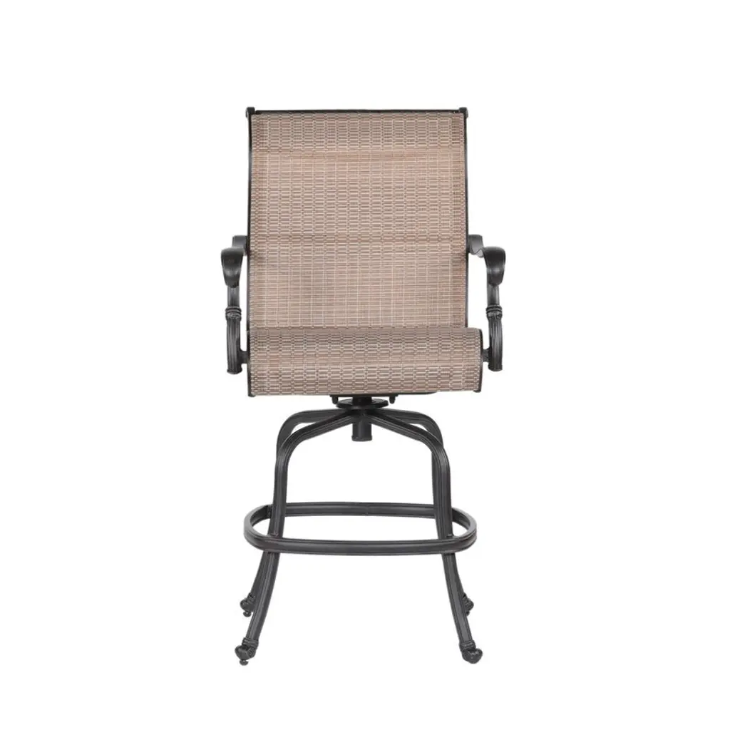 The well designed stool counter set will allow you to entertain your guests in style. The high-quality aluminum powder coated Counter set combines both elegance and function. You may find super ease sitting on the stool and no doubt it will make your backyard or poolside a favorite hangout spot to enjoy the leisure time. It also perfectly create the mood for great conversation and cafe-style dining. This 2-piece sling swivel counter set will make a lovely relaxing environment where you can catch up with friends or family over a drink or wine. All materials are treated to resist weather, rust and UV fading throughout the year. Product Information: Product Dimensions: (W) 24.21 in. x (D) 26.97 in. x (H) 48 in. Features and Benefits: These counter height patio chairs will add charm to your outdoor space. The swivel motion on these chairs offers optimum convenience. The built-in footrest of these outdoor Counterstools is stable enough which provides a comfortable place to rest your feet so that you can enjoy your leisure time more relaxed. Versatility and portability meet beauty and classic styling with the set Make a practical and stylish addition to your patio space. Aluminum frame with multiple-coat finish remains rust-free for the lifetime of the furniture. Two-piece high patio counter stools are crafted from sturdy rust-proof steel with a beautiful antique copper finish.
