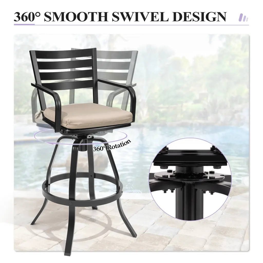 Outdoor Swivel Bar Stools Sunbrella Textilene Sling Aluminum Patio Barstools - Canvas Antique Beige - 2Pc