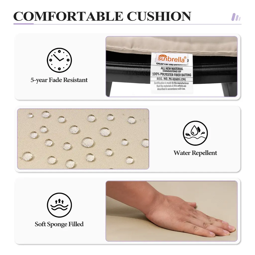 These outdoor Living swivel bar stools are made of sunbrella cushion and sturdy powder-coated aluminum frame. Whether in your backyard, patio, deck or even your restaurant outdoor dining space, you'll enjoy these stools for years to come.Features:Dimensions: