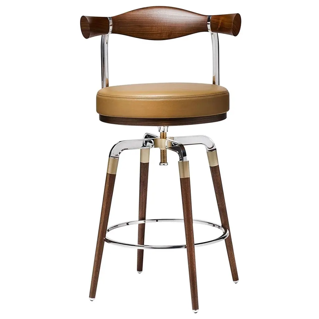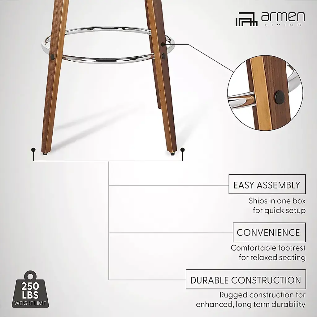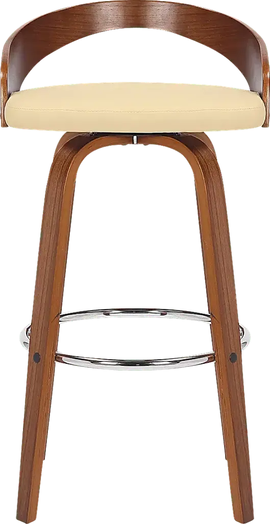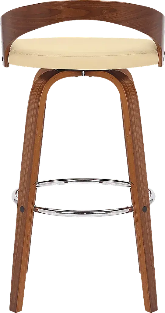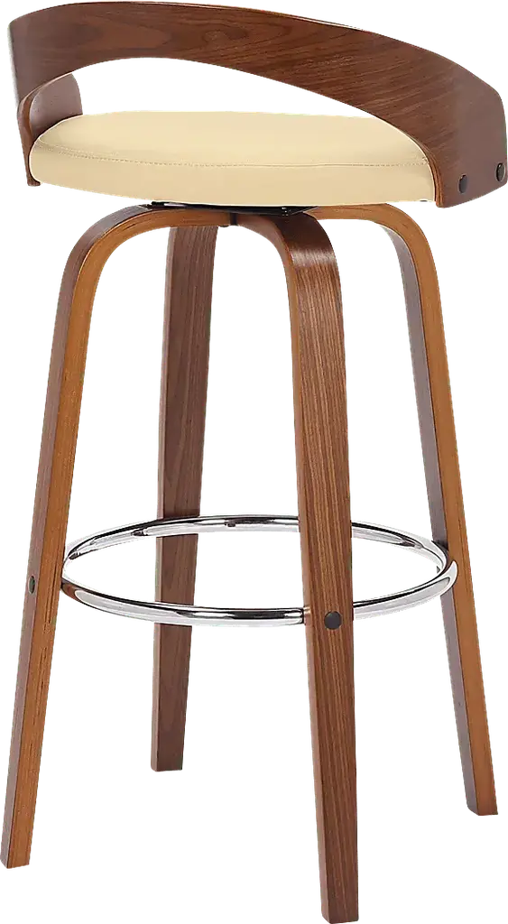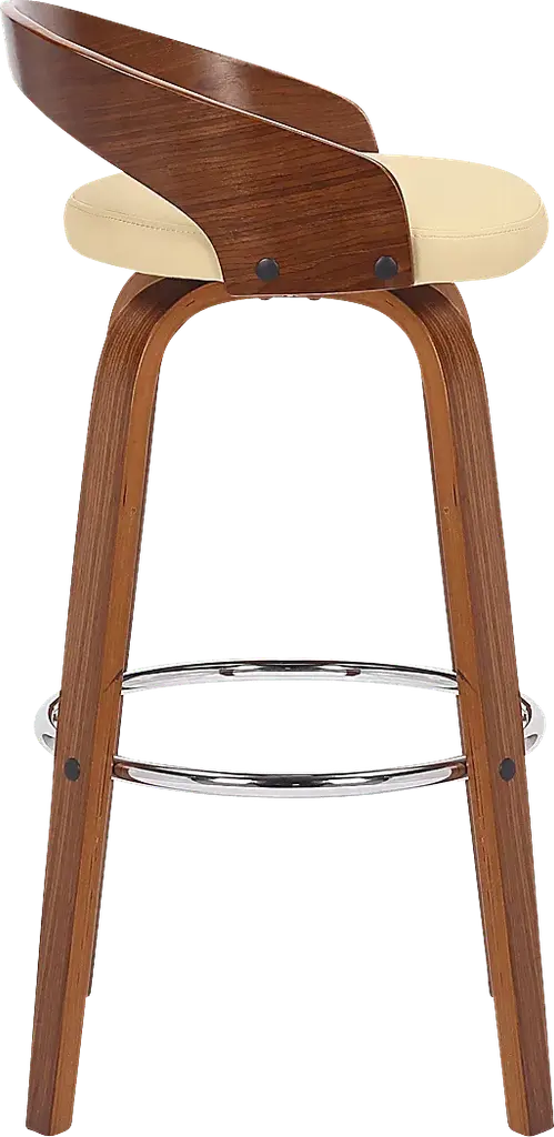 Add a touch of mid-century modern magic to your home with the Pearllight cream barstool. Designed with comfort and style in mind, this stool features a 360-degree swivel that allows you to easily interact with your friends and family regardless of their place in the room. The curved wood low back is ideal for posture alignment and an unmatched support, its opening is perfect for breathable easy seating. The Pearllight features a high-density foam cushion and beautiful faux leather upholstery that will allow you to sit or entertain for hours on end. The foundation of the product is supported by wood and chrome footrest for a chic and stylish aesthetic without comprising practicality and functionality of this item. Customer assembly is required.