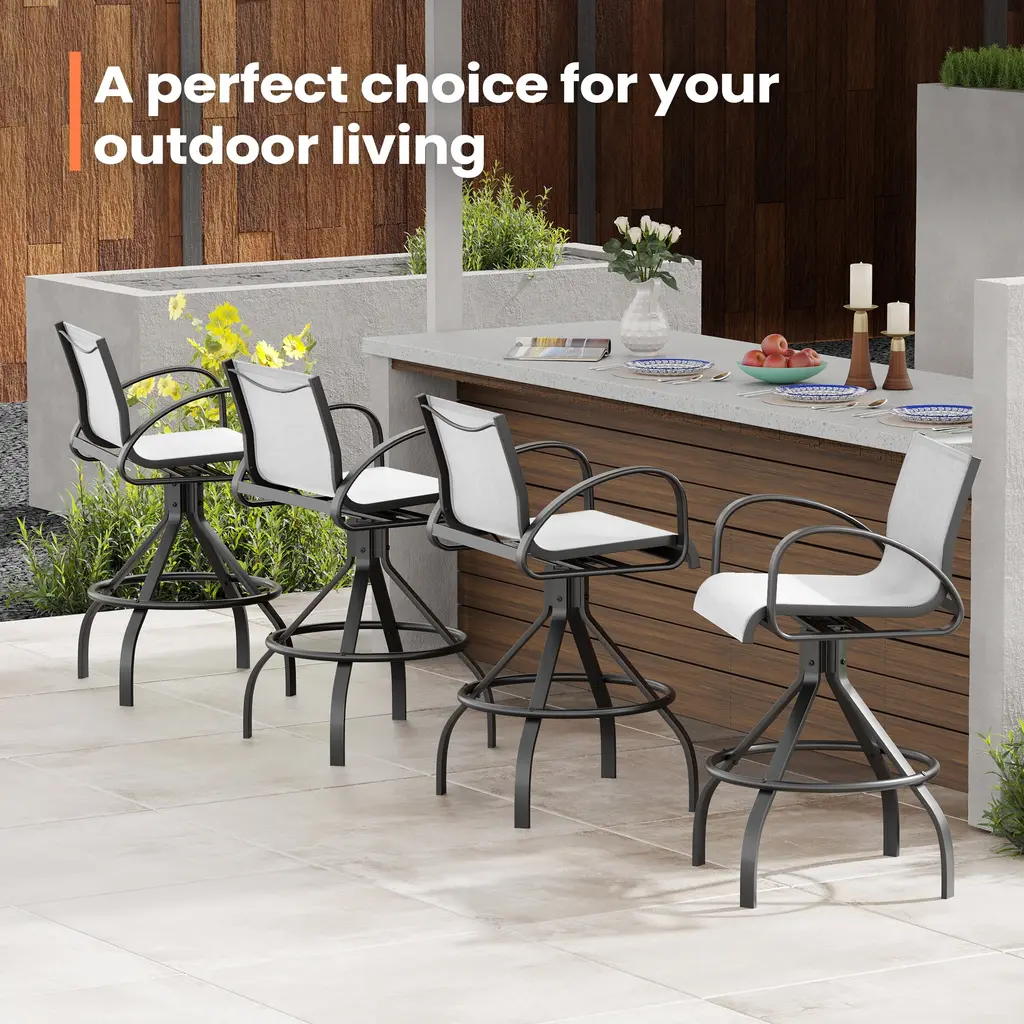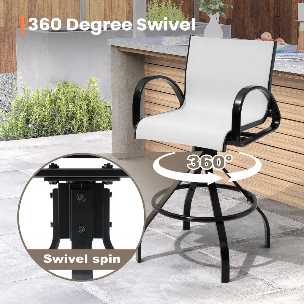 Pellebant Patio Swivel Aluminum Bar Stools With Sunbrella Textilene - 22.83 In W X 18.11 In D X 42.13 In H - Augustineoyster-Setof2
