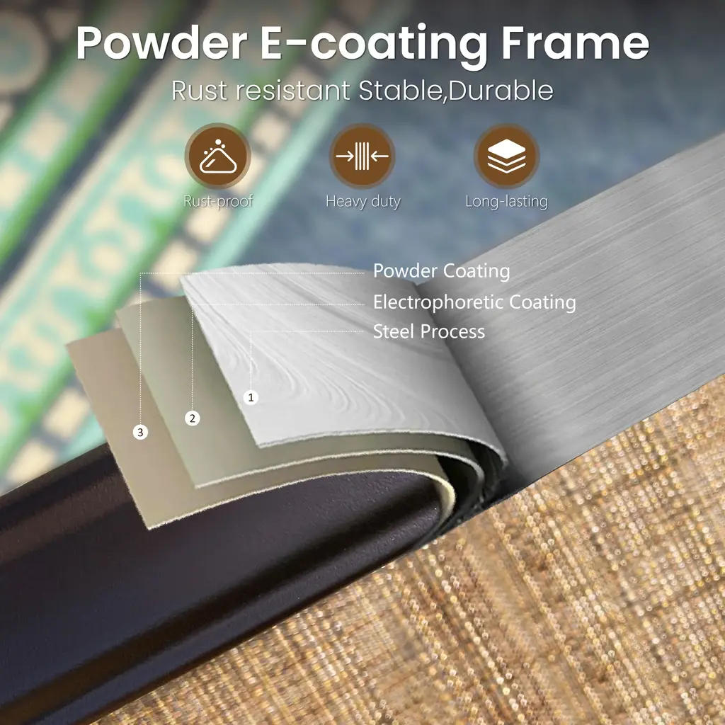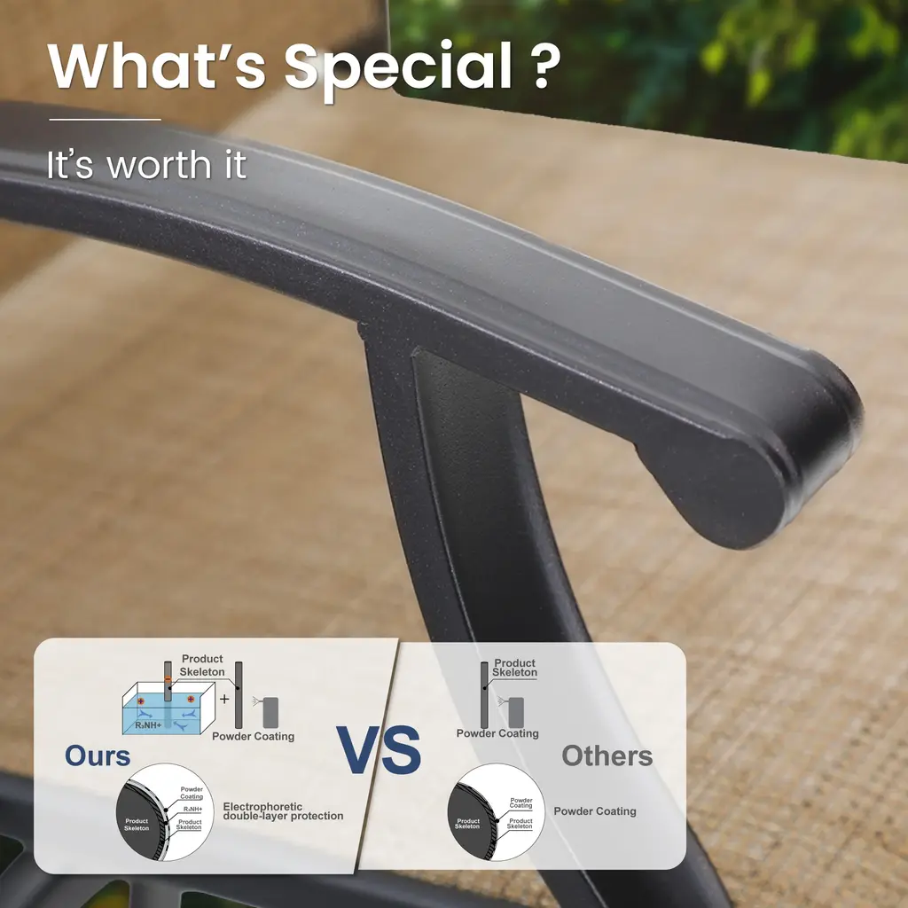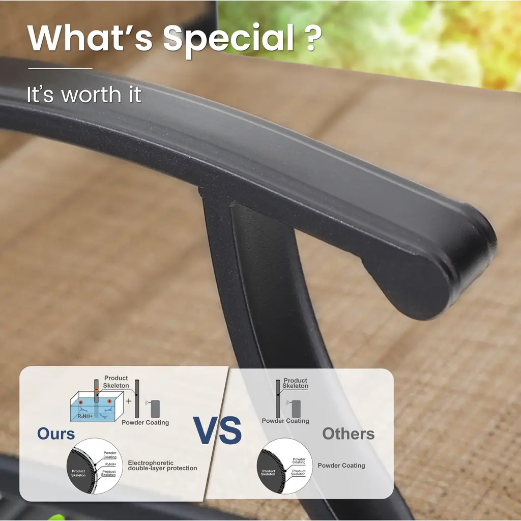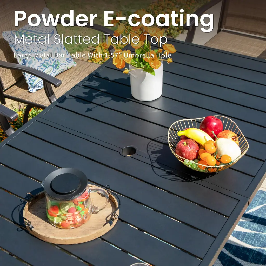 The durable, anti-rust metal frame supports up to 300 lbs. Breathable Textilene sling fabric keeps you cool in summer. Comfortable outdoor swivel barstools swivel smoothly, with curved arms and well-ventilated seats for long-lasting comfort. Whether you prefer the sling fabric or padded versions, these outdoor bar stools with backs are perfect for relaxing on your patio bar and stools setup. Features a 1.57" diameter umbrella hole and fixing holes to keep them in place on the tabletop—ideal for your outdoor patio bar stools collection.