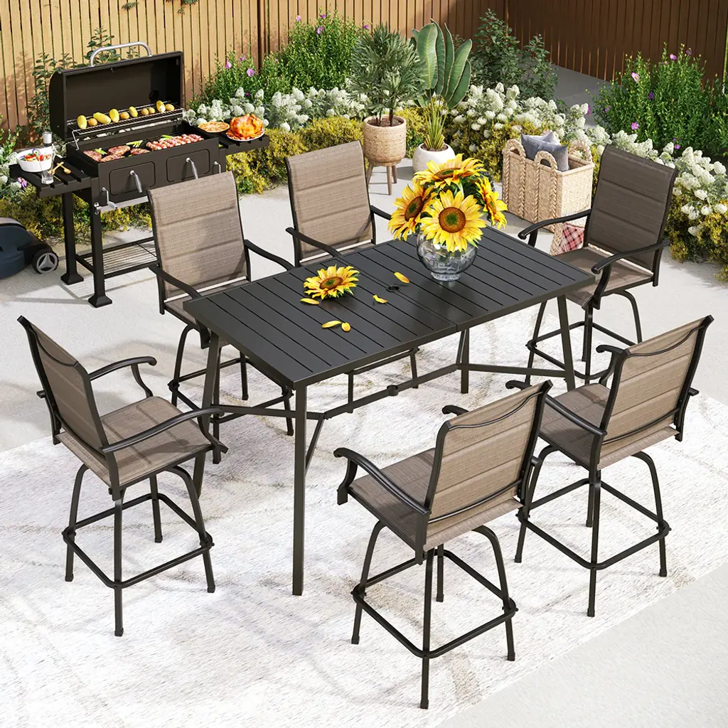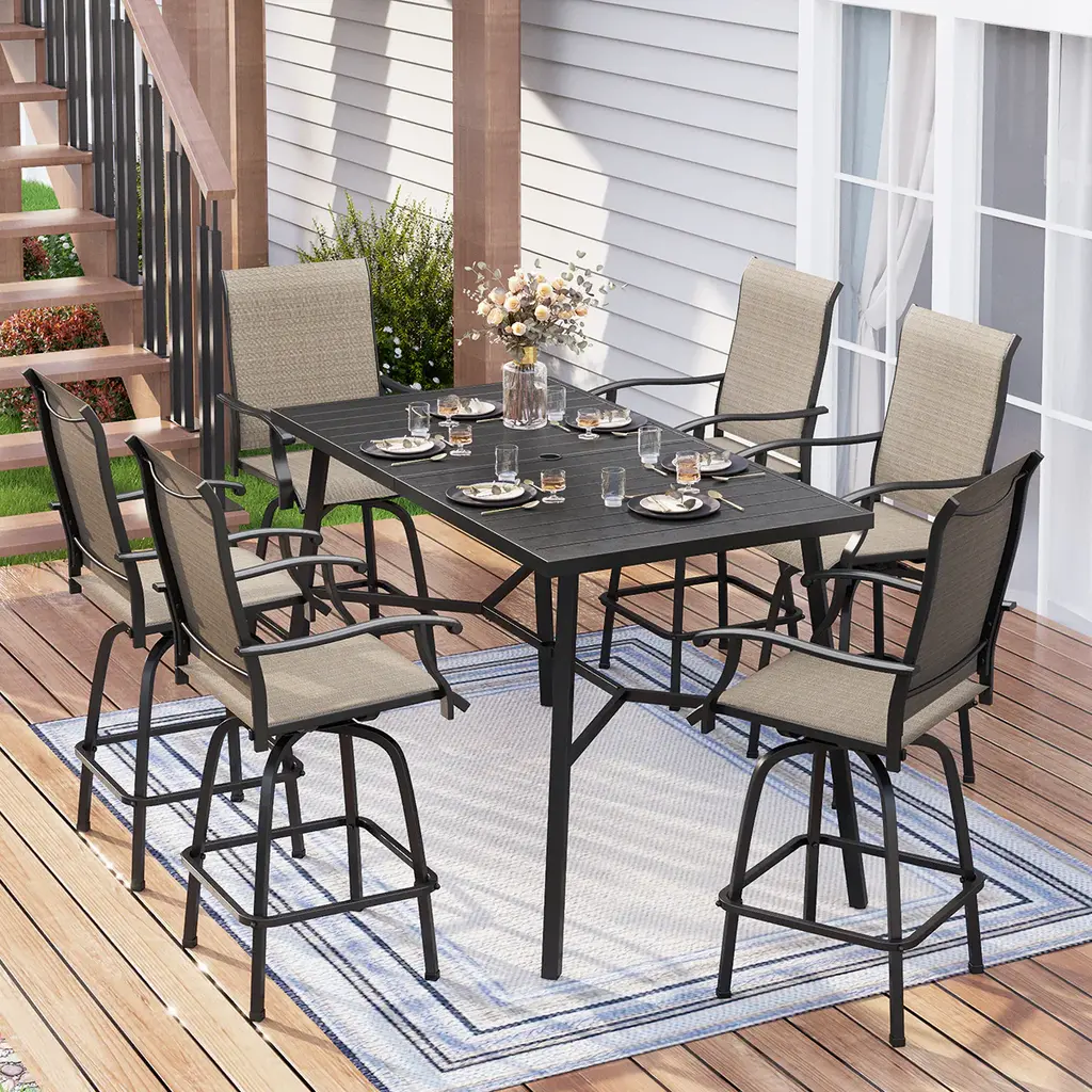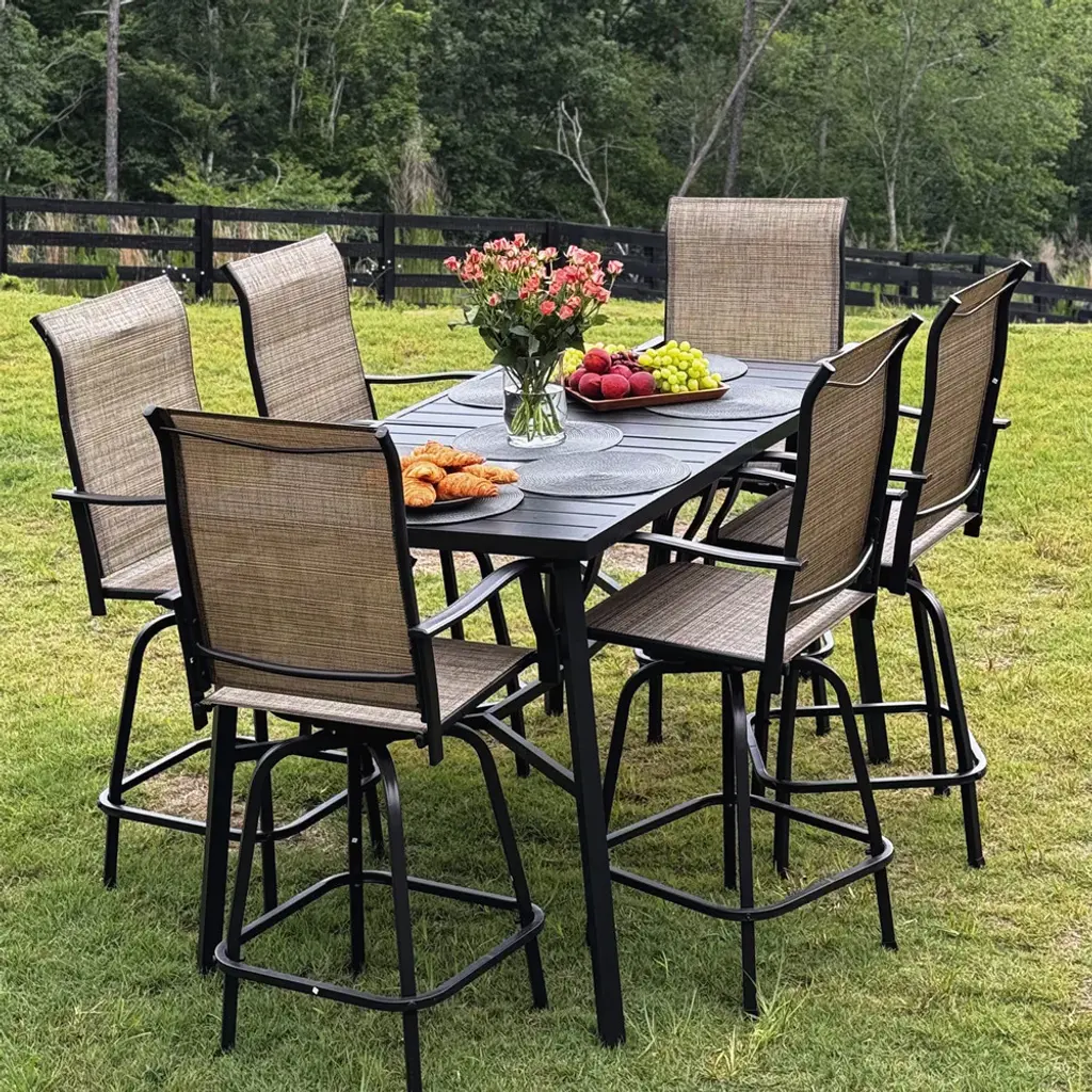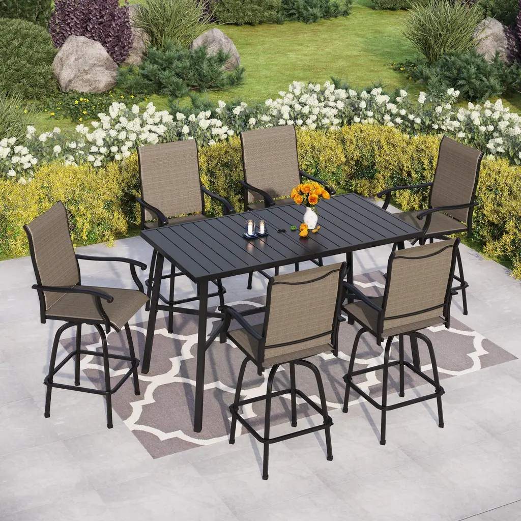 Phi Villa 7-Piece Outdoor Bar Stool Set Textilene Swivel Stools