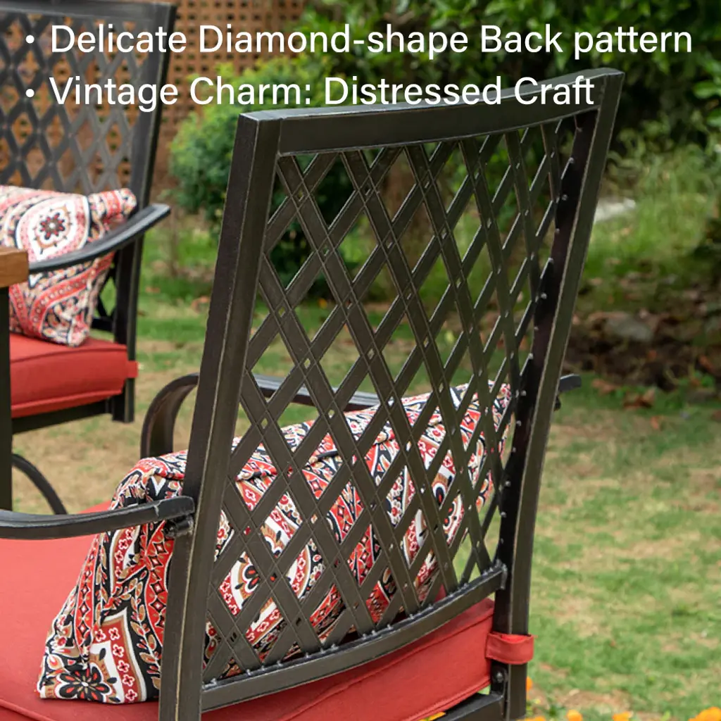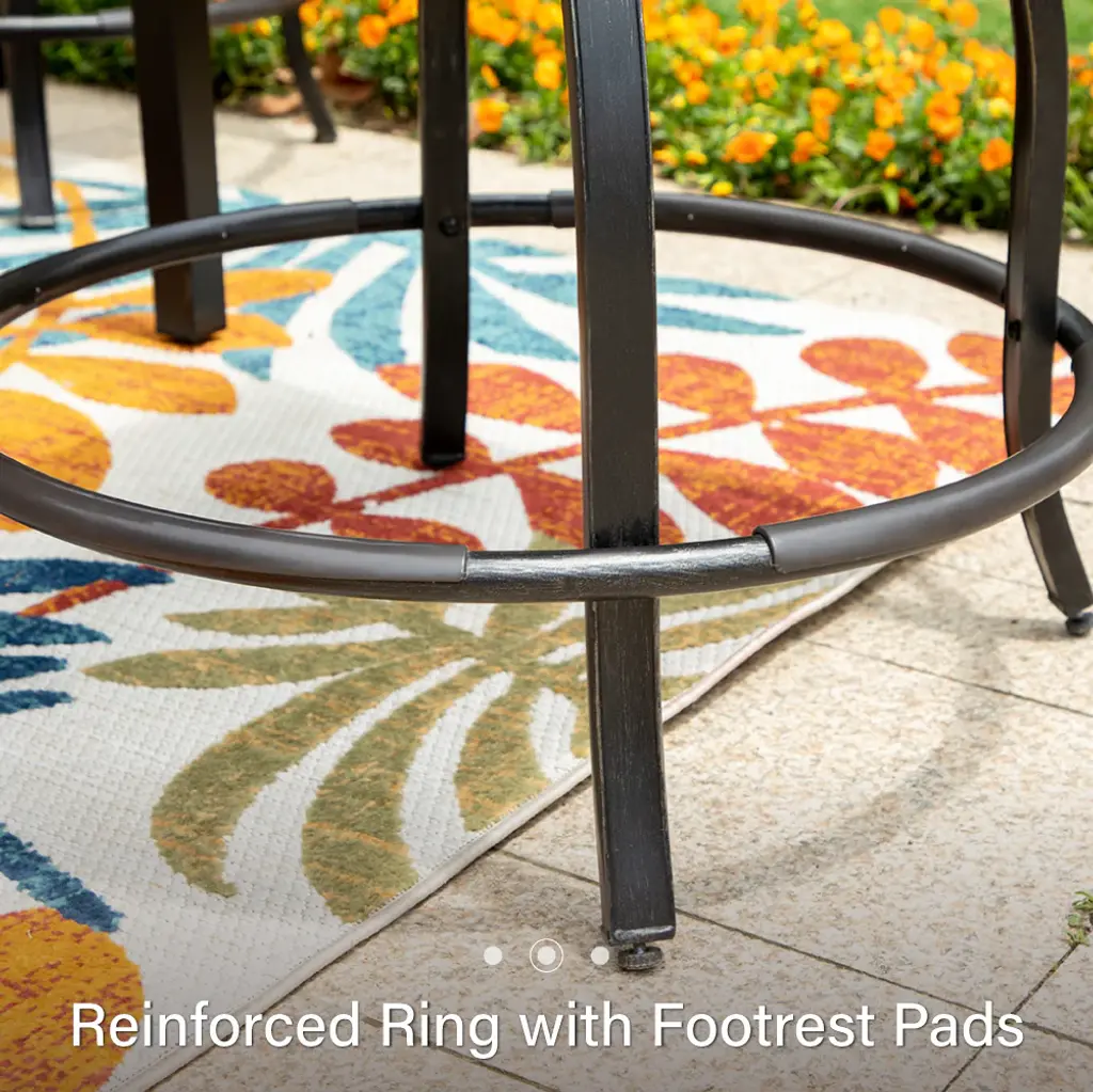 The warm color scheme effortlessly complements any outdoor setting, seamlessly blending with existing furniture or making a bold statement as the focal point of your outdoor space. Elevate your outdoor experience with these versatile and stylish bar stools. Take advantage of the 360-degree swivel functionality, allowing you to effortlessly rotate in any direction. Whether engaging in conversations, socializing, or keeping a watchful eye on kids playing nearby, this swivel feature provides easy access to your surroundings without constantly having to move the stool.