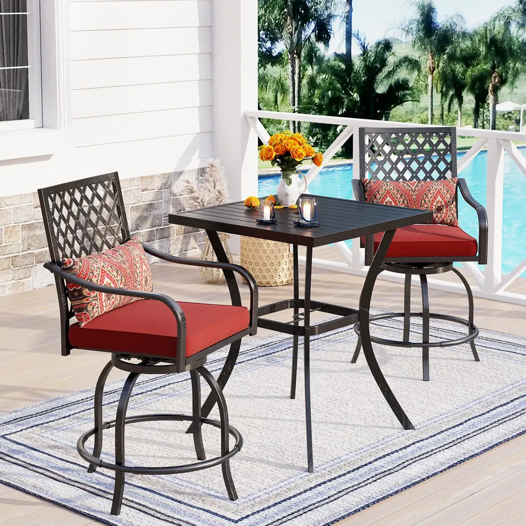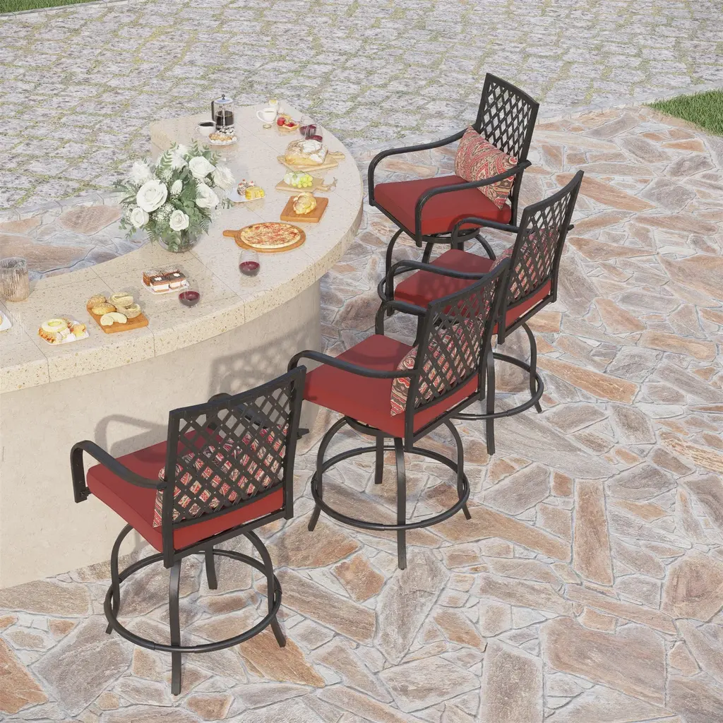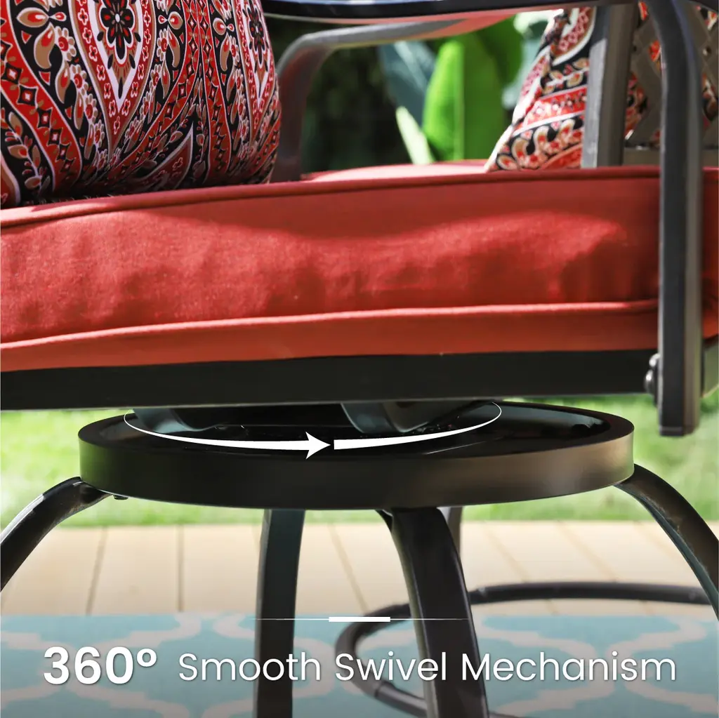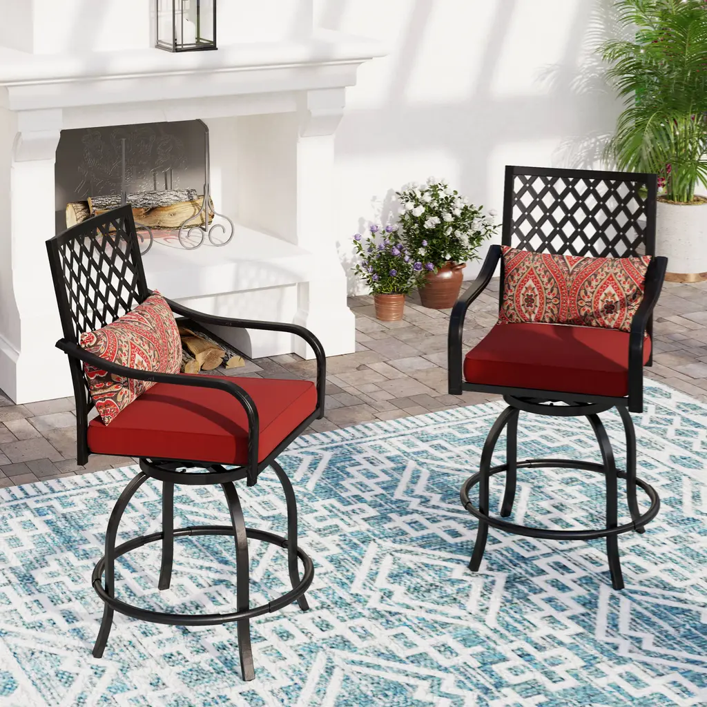 Phi Villa Bohemian Style Steel Swivel Outdoor Bar Stools Set With Gifted Cushions