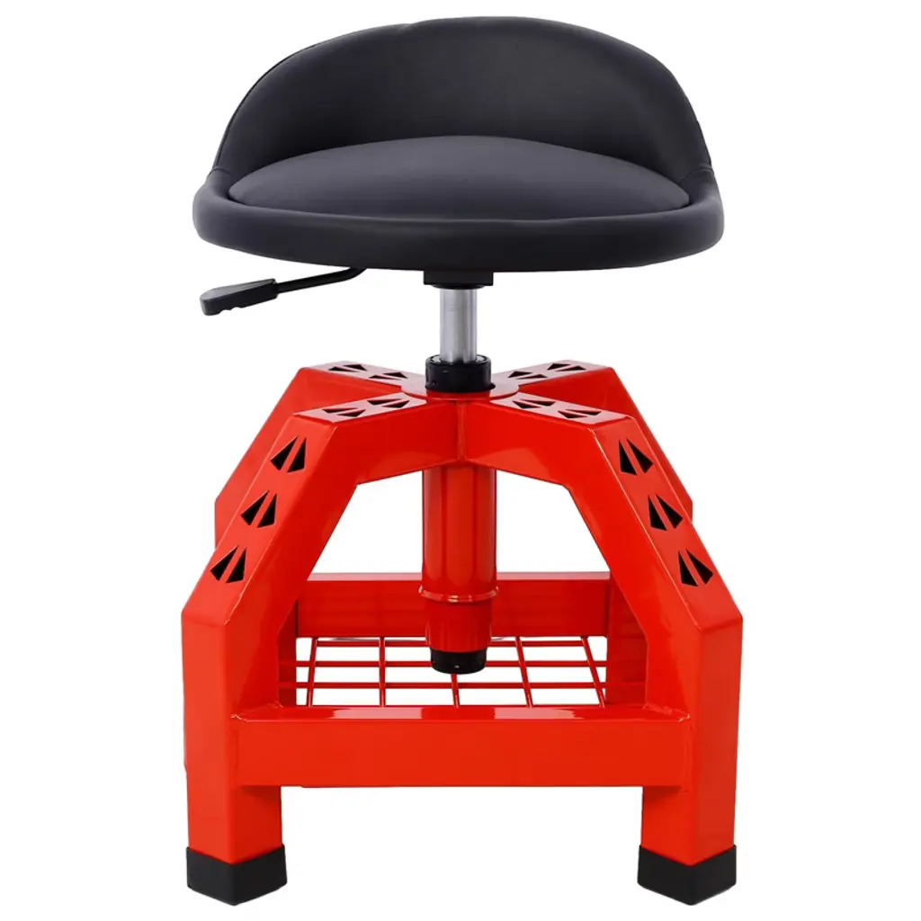 Red Rolling Shop Stool With Tool Storage & Lumbar Support – 360° Swivel Garage Seat With Lower Shelf (Truair Brand, 1-piece)