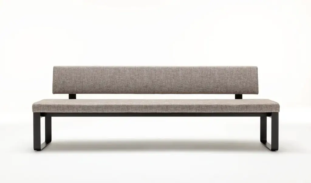 Long since frowned upon as too traditional, Rolf Benz 620 heralds a whole new interpretation of the seating bench in modern dining rooms. It combines perfectly with the Rolf Benz 620 range of chairs, and its highly practical and clear shape means that it blends beautifully with many other chairs and tables too. The solid side panels of the Rolf Benz 620 bench are attached to the seating surface without projecting and are covered in the material of the seat and the seatback. Matt or high-gloss chrome-plated runners or runners in traffic black are available as an alternative foot design. The dining bench is available in the basic version as well as a seat or corner bench in many different sizes and combinations – the best solution is therefore possible for almost any floor plan.With Rolf Benz 620, we offer you individual solutions for seating furniture at the dining table and counter, ranging from chairs to a modern (corner) bench and bar stools. You can assemble the chair entirely according to your taste, your ergonomic preferences and the size of your rooms. Rolf Benz 620 is available in two backrest heights, as a cantilever chair with round or square tubing or with a modern, swivelling plate foot to match your furnishings in matt or high-gloss chrome. Optimum seating comfort is provided on the Rolf Benz 620 by a comfortably padded seat back shell that rocks pleasantly. The three-dimensional curved arm rests offer even greater comfort and are available in walnut veneer or oak veneer. Stained according to the Rolf Benz hue card, they will superbly match the materials of your dining table. • Cover• Fibreglass-strengthened plastic seat and back piece. Back with moulded polyurethane foam. Seat with embedded micro-coiled springs and moulded polyurethane foam on top. All foam pieces covered with polyester fleece• Connector joining seat piece and leg frame made from sandblasted, cast aluminium• Leg versions, options: Leg metal, options:• Steel matt chrome• Steel high-gloss chromeCantilever chair rectangular tubular metal, options (against surcharge):• Steel matt chrome• Steel high-gloss chrome• Armrest available in veneered moulded plywood.