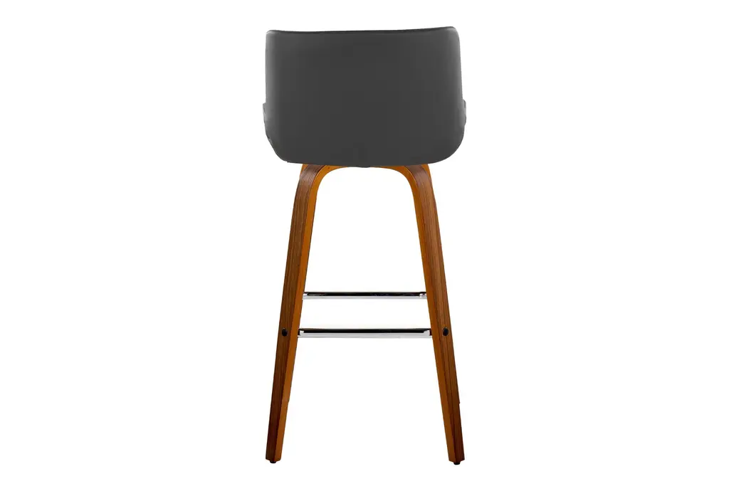 Santi 30" Midcentury Modern Fixedheight Barstool With Swivel In Walnut Wood And Grey Faux Leather With Square Chrome Metal Footrest Set Of 2