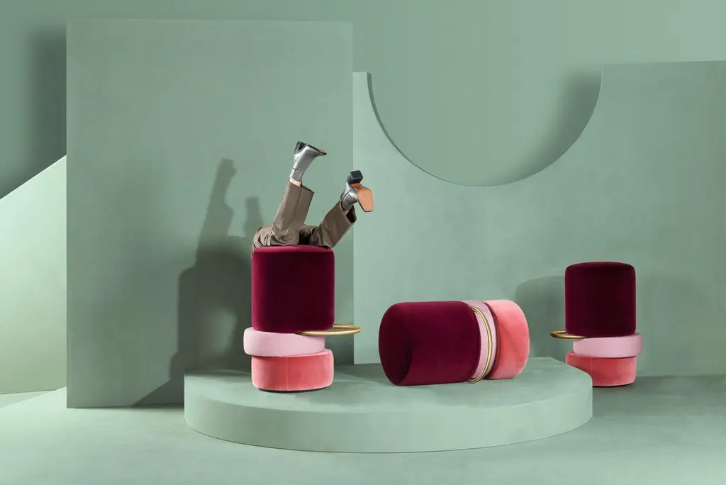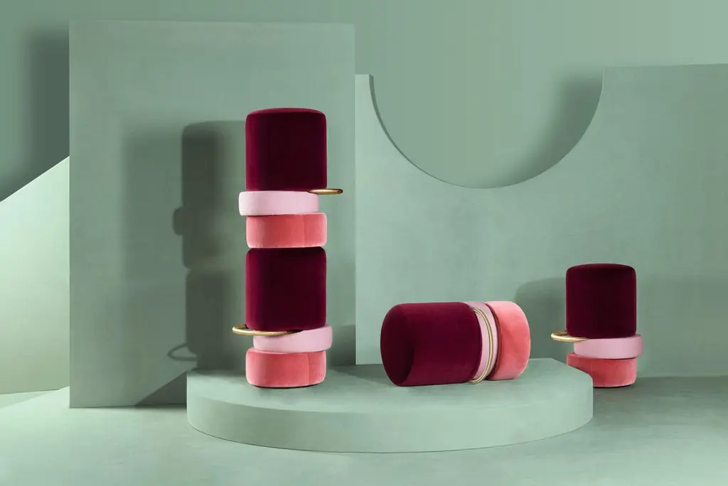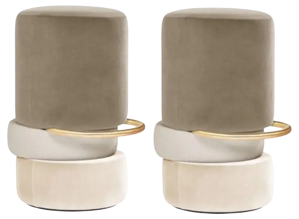 Set of 4 lipstick bar stools by Royal StrangerDimensions: 83 x 62 x 46 cmMaterials: A matte body and a matte pattern over a glossy surface, elevated by a brass presence.With a playful and geometrical form, the lipstick bar stool will make you feel like you are floating on cotton candy.The combined look between the uneven shapes, the warmth textures and the vibrant colors turns this contemporary design in a subtle but unforgettable piece made to entertain with its swivel body.The extravagant lipstick bar stool brings the ultimate sense of beauty and style to any space.Royal Stranger is an exclusive furniture brand determined to bring you the best unique pieces of art and design.Fusing design, art and the best craftsmanship, they strive to deliver the best state of handmade art furniture. The design team works every day to create meaningful products that represent values such as passion, function, aesthetics, and know-how. Values that are meant to represent Royal Stranger’s DNA. This dedication is present at all stages of production and the combination of craftsmanship and innovative design contributes toOur final purpose: to produce certified high-quality products, made with passion and expertise and using royal materials such as a gold leaf, rich woods and high-quality lacquers.It was in 2013, as architects, that Sofia Santos & Rui Santos started to push the boundaries of innovation in several retail design concepts for some of the best stores in Portugal. This will have always been present in their work, and that’s how the brand was born.