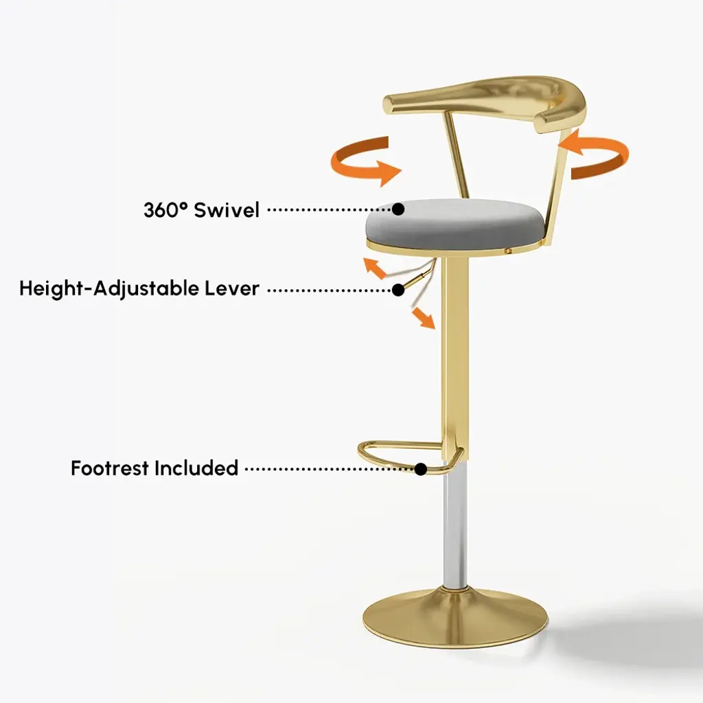 Elevate your kitchen or dining area with this plush bar stool. Sumptuous velvet seating and contemporary brushed stainless steel bases combine adjustable elements with a 360 degrees swivel to craft the very epitome of ultimate luxe. It's a perfect piece for any modern space in today's home.