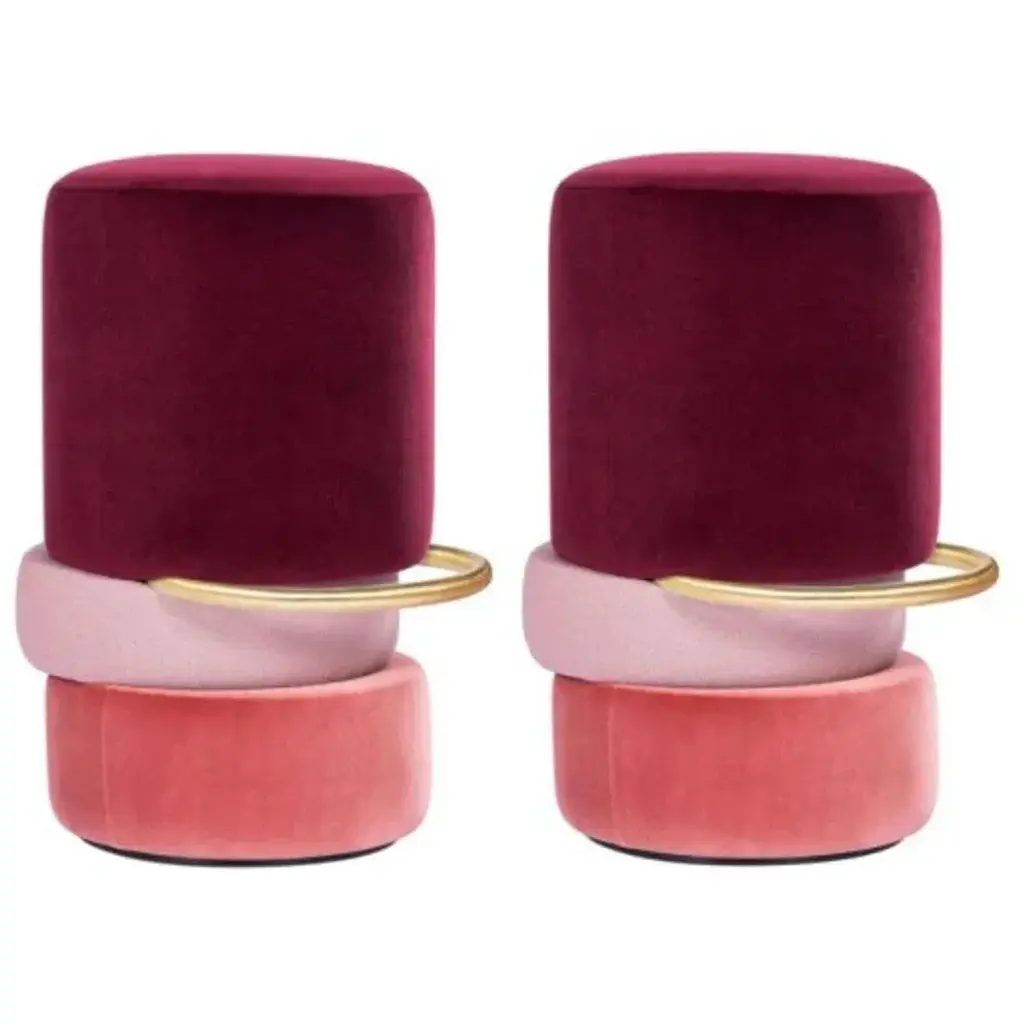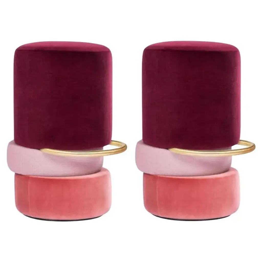 Set of 2 lipstick bar stools by Royal Stranger Dimensions: 188 x 49 x 91 cm Materials: A matte body and a matte pattern over a glossy surface, elevated by a brass presence. with a playful and geometrical form, the lipstick bar stool will make you feel like you are floating on cotton candy. The combined look between the uneven shapes, the warmth textures and the vibrant colors turns this contemporary design in a subtle but unforgettable piece made to entertain with its swivel body. The extravagant lipstick bar stool brings the ultimate sense of beauty and style to any space. Royal Stranger is an exclusive furniture brand determined to bring you the best unique pieces of art and design. Fusing design, art and the best craftsmanship, they strive to deliver the best state of handmade art furniture. The design team works every day to create meaningful products that represent values such as passion, function, aesthetics, and know-how. Values that are meant to represent Royal Stranger’s DNA. This dedication is present at all stages of production and the combination of craftsmanship and innovative design contributes to Our final purpose: to produce certified high-quality products, made with passion and expertise and using royal materials such as a gold leaf, rich woods and high-quality lacquers. It was in 2013, as architects, that Sofia Santos & Rui Santos started to push the boundaries of innovation in several retail design concepts for some of the best stores in Portugal. This will have always been present in their work, and that’s how the brand was born.