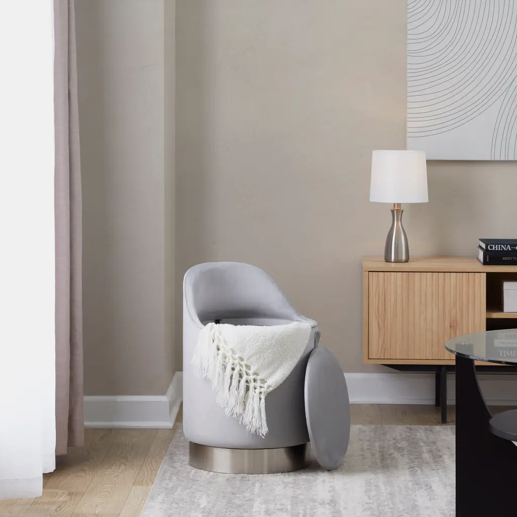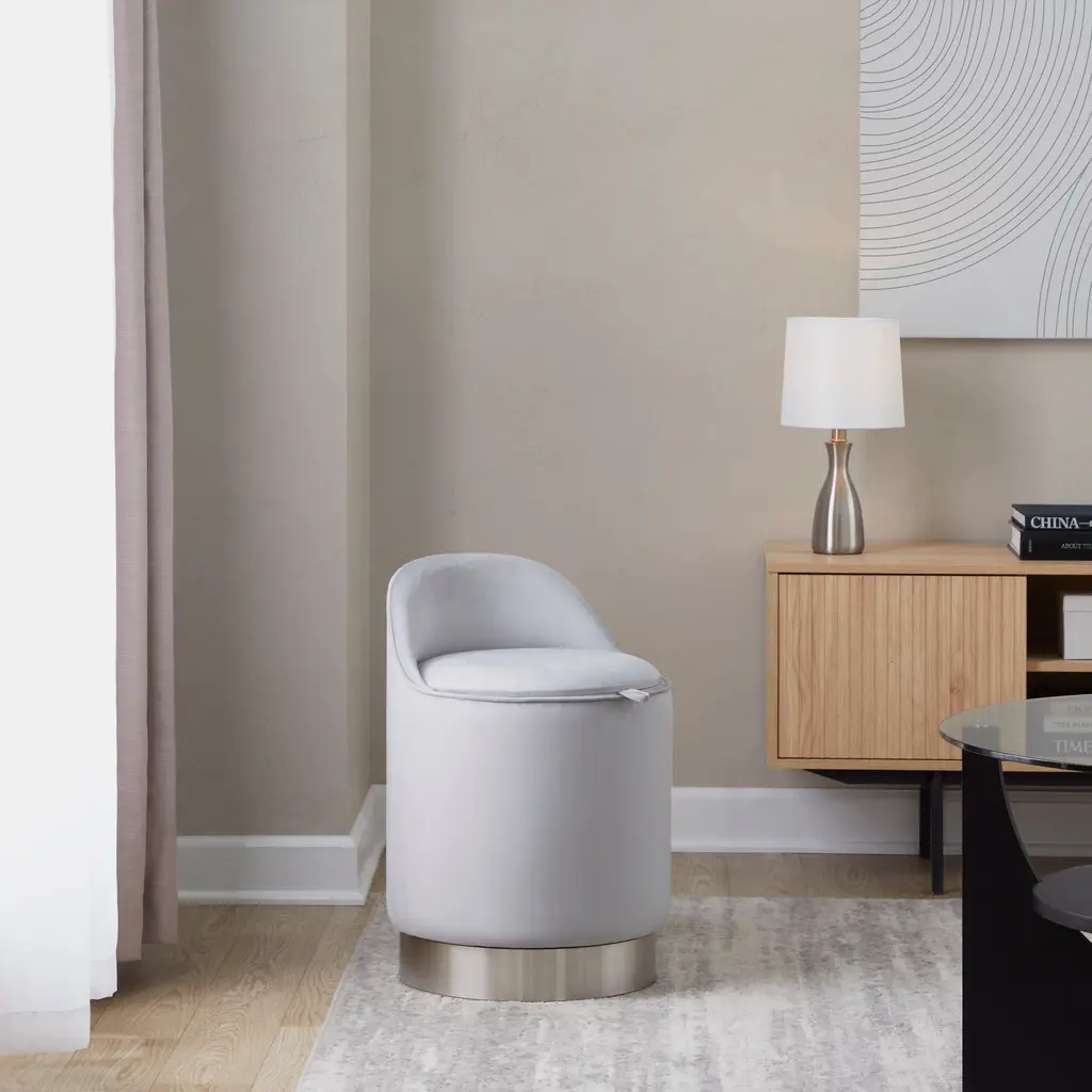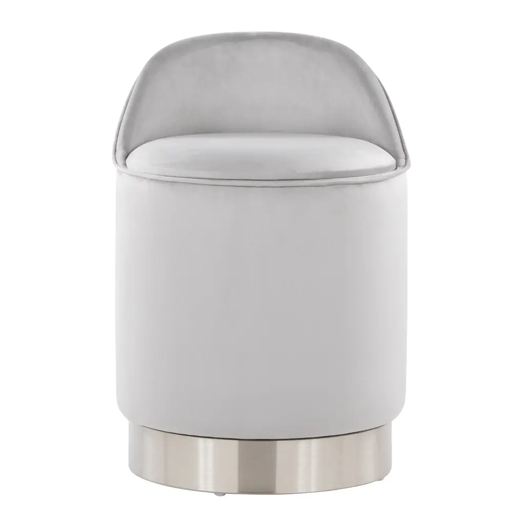 Bring a note of glamour to your home with the chic design of the Corday 18" Vanity Stool. Featuring a low backrest, luxuriously soft cushioned velvet upholstery and a chic metal swivel base that allows you to get ready with ease. Available in a variety of colors, choose the one that fits your space the best.Features:Dimensions: