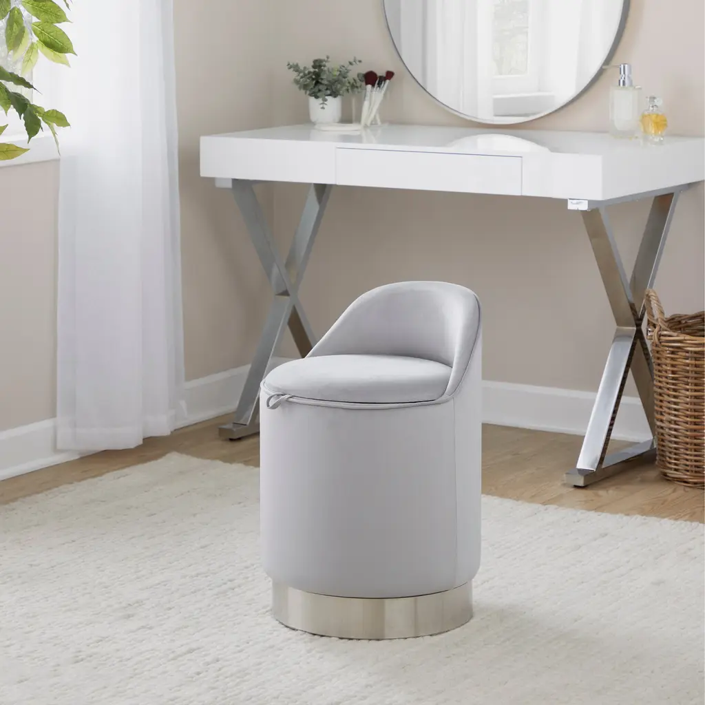 Silver Orchid Corday 18" Swivel Vanity Stool - Silver Velvet/chrome Metal