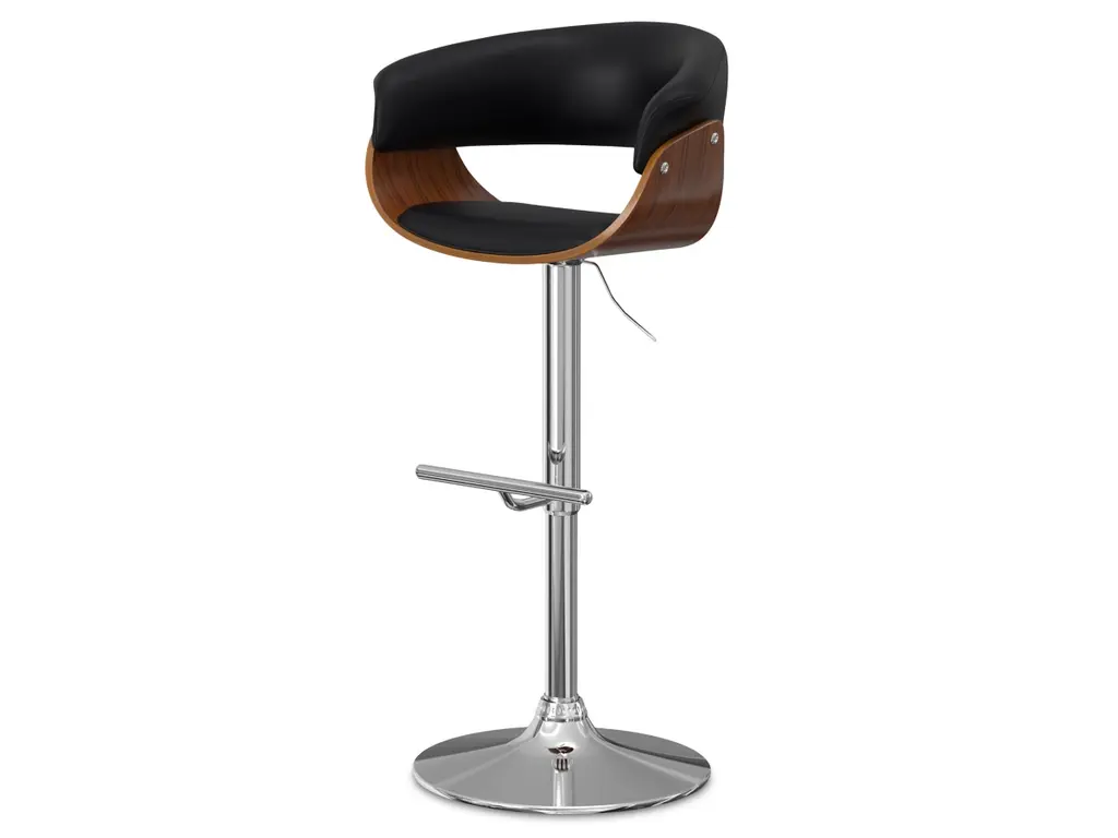 Enjoy the comfort of the Mid Century Modern Sheldon Bentwood Adjustable Height Bar Stool. This classic, vintage design features ergonomically curved seat and back that enfolds you when seated. The seat swivels and easily adjusts for height. This stool is great for kitchen counter and bar seating.