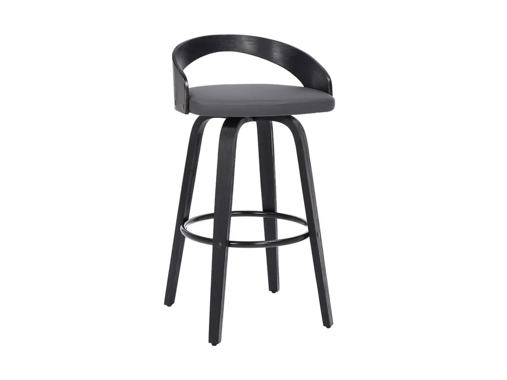 Add a touch of mid-century modern magic to your home with this Armen Living counter stool. Designed with comfort and style in mind, the Sonia features a 360-degree swivel that allows you to easily interact with your friends and family regardless of their place in the room. The curved wood back is ideal for posture alignment and support, while its opening is perfect for breathable easy seating. The stool features a high-density foam cushion and beautiful faux leather upholstery that allows you to sit or entertain for hours on end. The foundation of the product is supported by wood with a chrome-tone footrest for a chic and stylish aesthetic without comprising practicality and functionality.