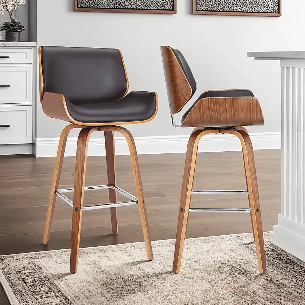 Add some mid-century modern flair to your home with the Spicuritye brown counter height stool. Featuring a retro style silhouette, the Spicuritye showcases function, convenience, and timeless beauty. The 360-degree swivel functionality gives you the mobility you need when sitting or entertaining and allows you to easily engage with any of your guests regardless of their place in the room. An ideal addition to your kitchen peninsula or island, home bar or pub table, this stool's high-density foam cushion and chrome ring footrest keep you comfortably seated. Customer assembly is required.