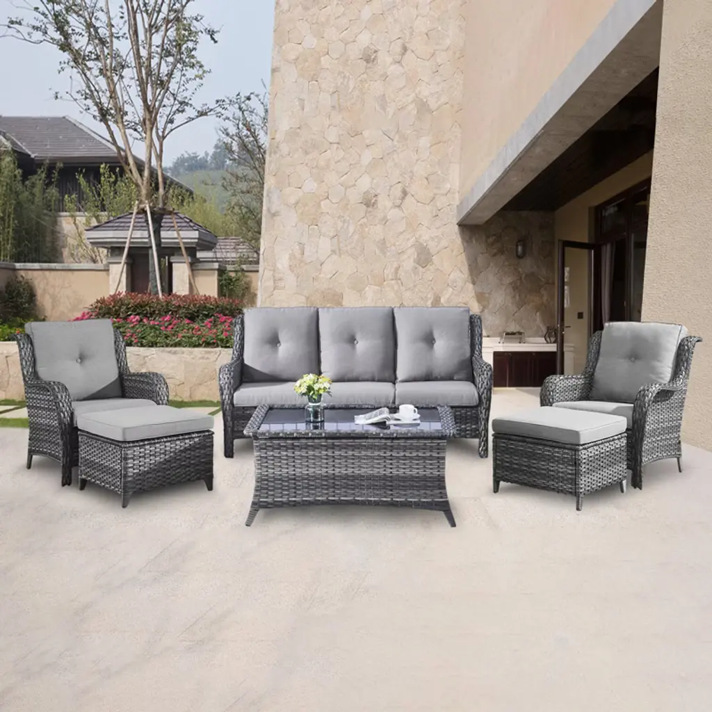 Sugold Outdoor Patio Furniture 6 Pieces Pe Rattan Furniture Set Wicker Outdoor Sectional Sofa