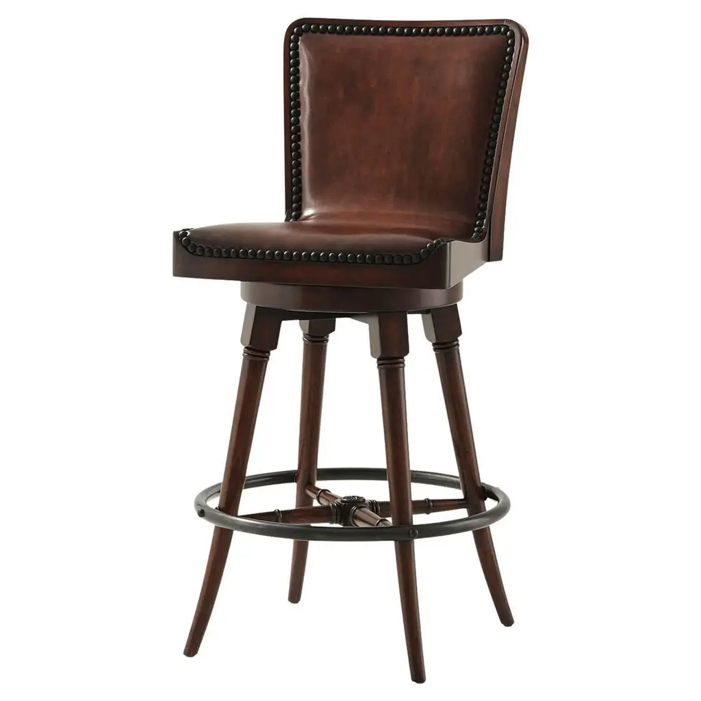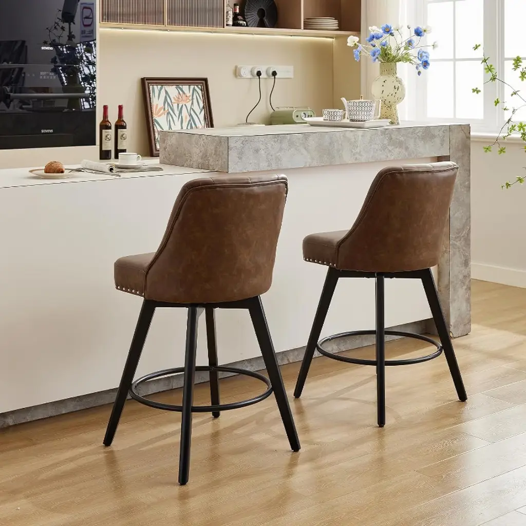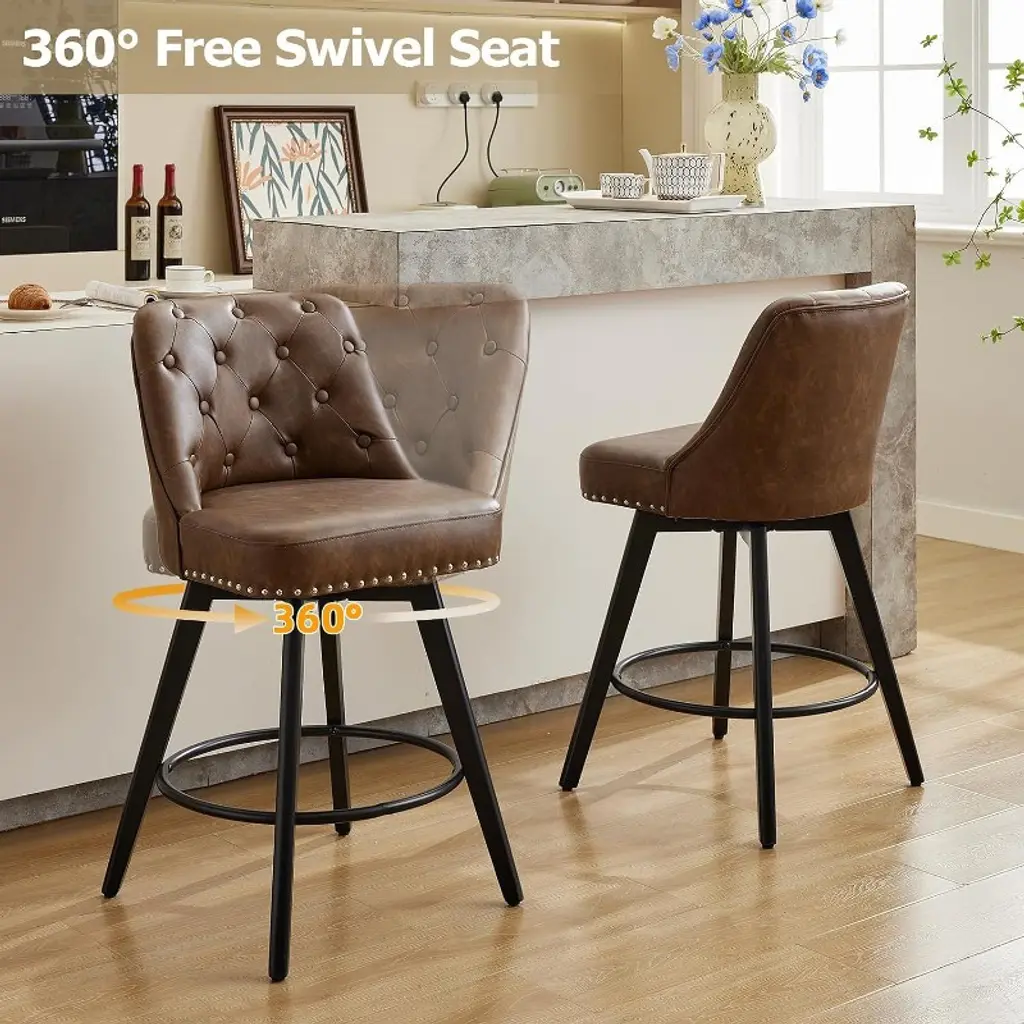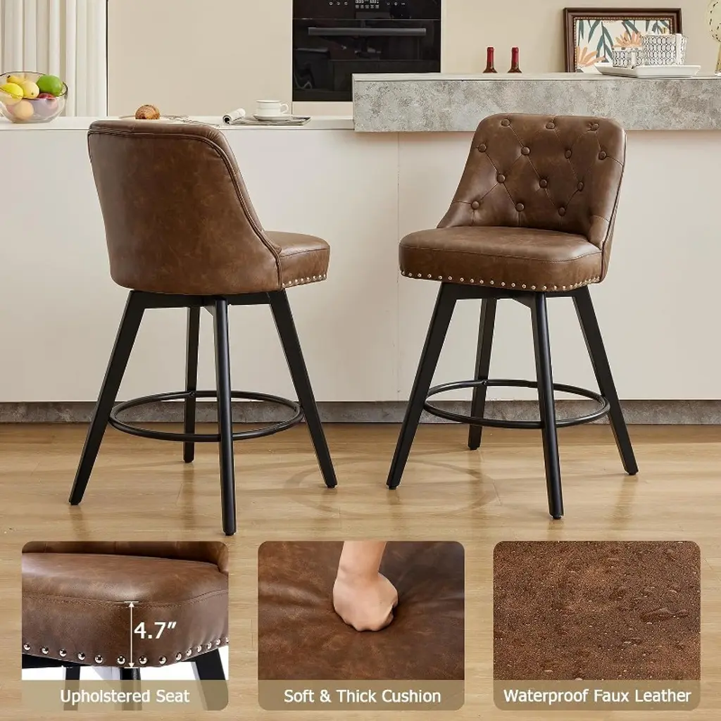 Swivel Bar Stools With Back, Counter Height Bar Stools Set Of 2, 26" H Faux Leather Upholstered Barstools Modern Counter Stool With Wood Legs, Brown