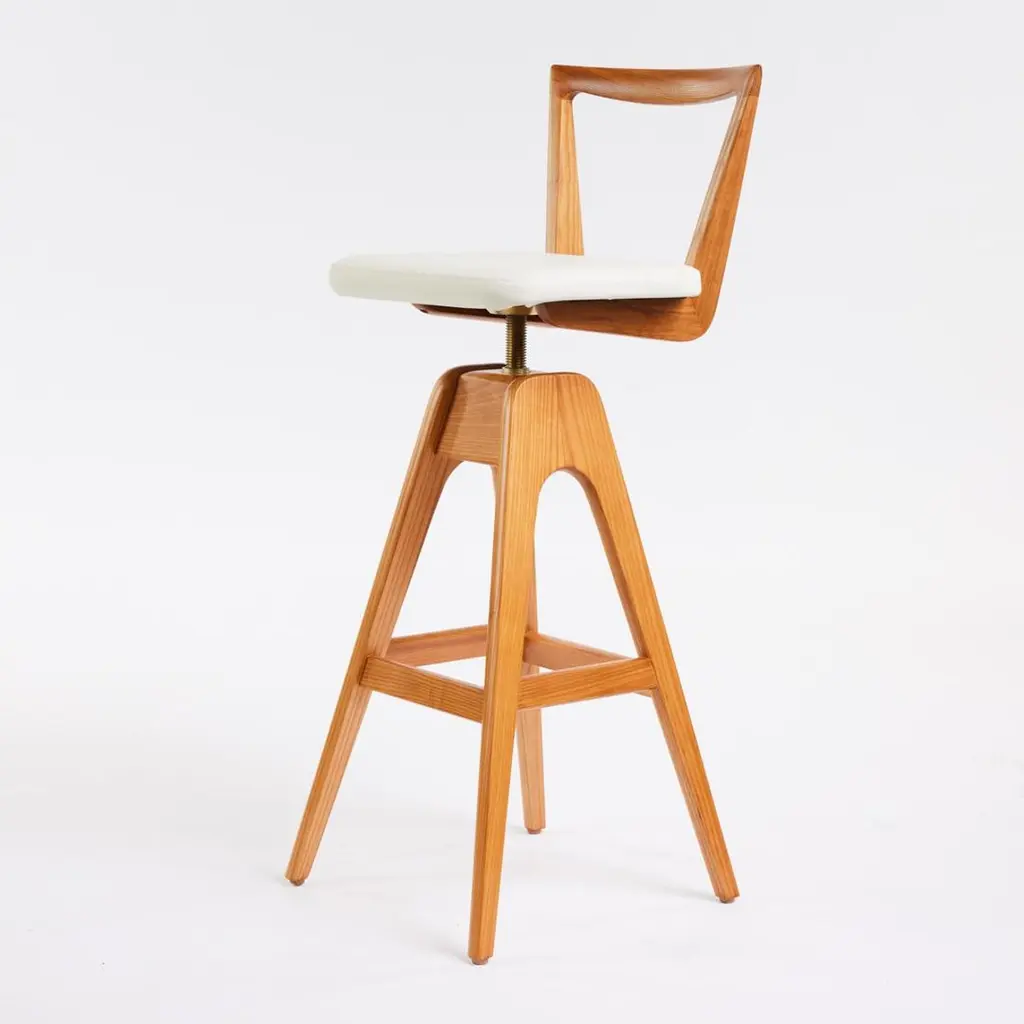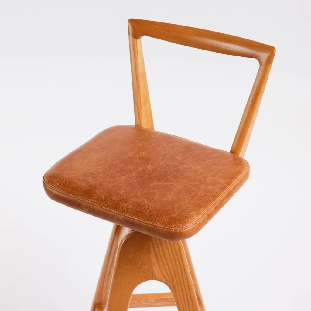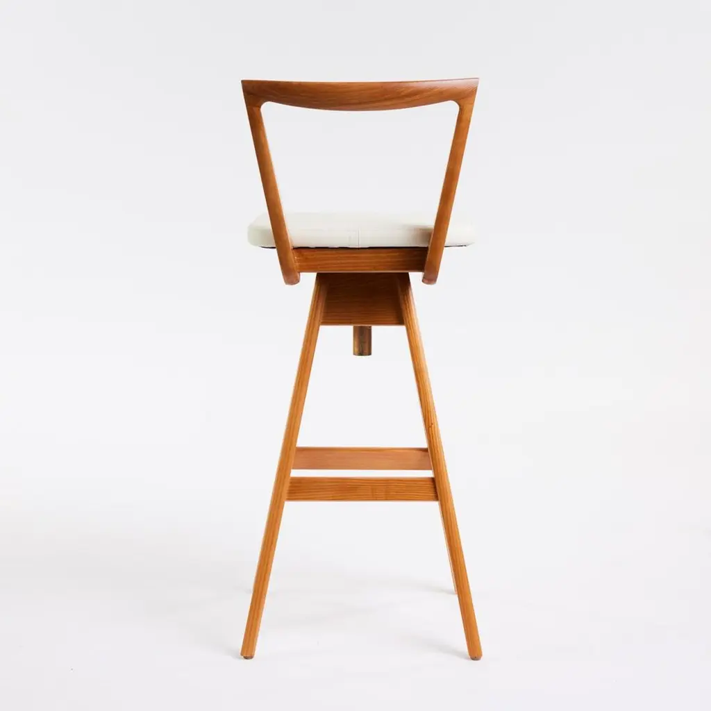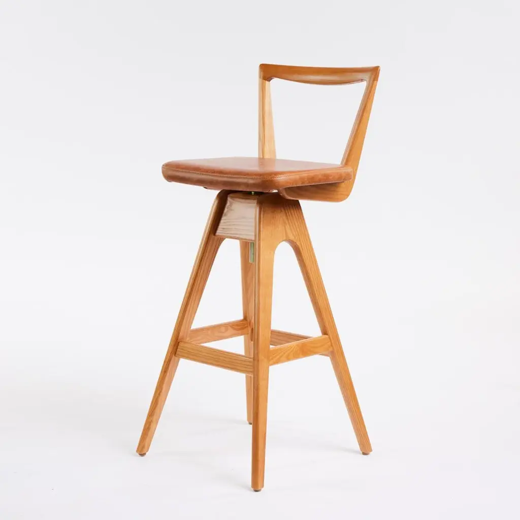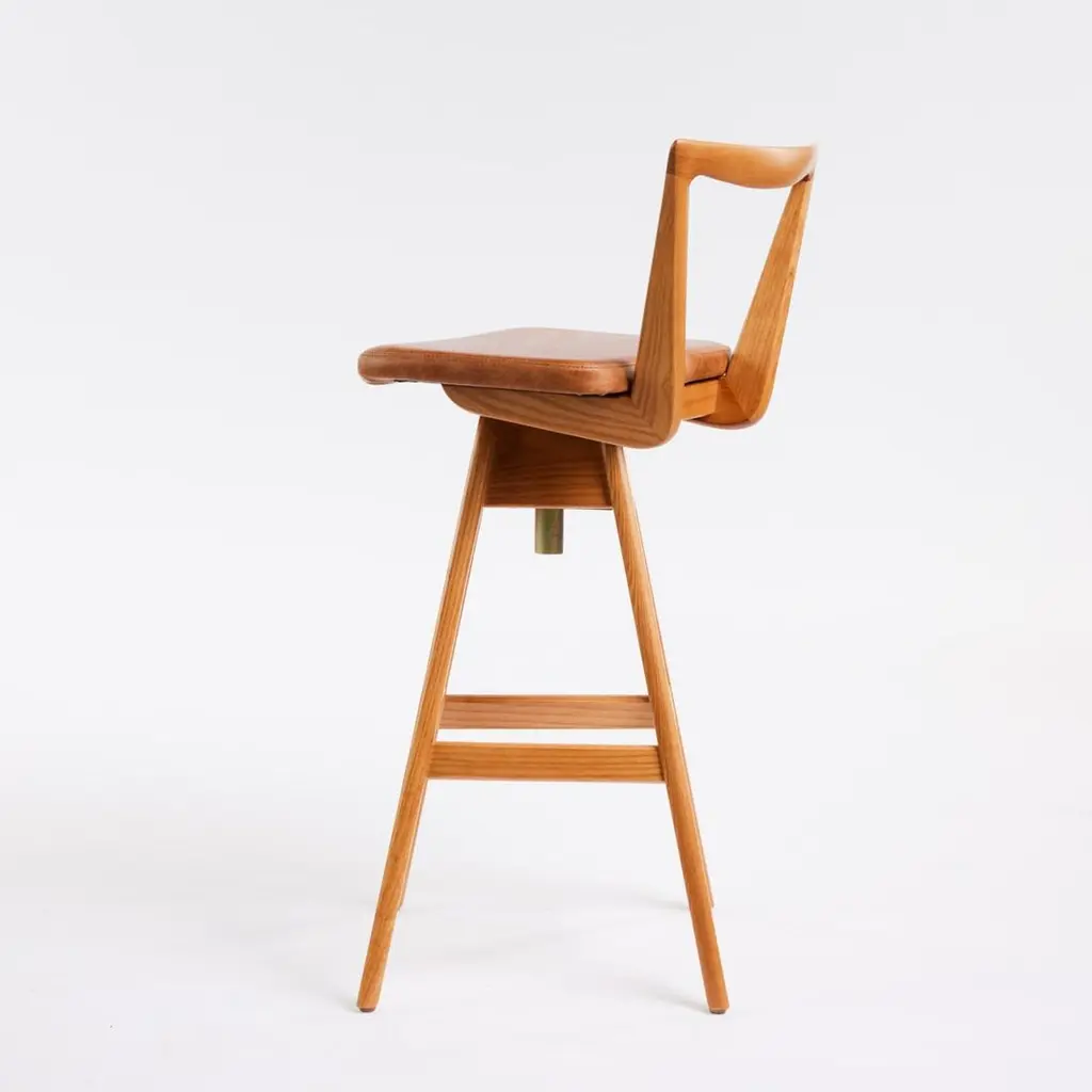 The TH Brown Danish bar stool was designed by Peter Brown and first manufactured from early 1960, and remains an iconic, timeless Australian design masterpiece to this day. The beautifully sculpted timber seat back, angled legs and hand stitched upholstery remain as contemporary as the day they were first designed.These iconic stools are the among the most coveted Australian mid-century pieces ever produced. The original examples have become heirlooms and are seen in many magazines, exhibitions, and design showrooms around the world.Hand finished by expert craftsmen it features solid timber frame, the finest Italian leather and the highest quality materials throughout. All timbers and leathers are ethically sourced.These stools will be a design statement in any contemporary or mid-century themed kitchen, bar, or office. They are individually numbered and certified, offering the purchaser an ideal heirloom piece for future generations.TH Brown remains Australia’s oldest operating furniture brand - established in Adelaide, South Australia in 1911. From the 1950's, TH Brown produced many of the most sought-after mid-century furniture pieces ever produced in Australia.The most famous designs were the iconic ranges of Bar Stools, Coffee Tables and Dining Chairs, amongst many others - produced in Adelaide from the mid 1950's through to the 1980's. Our most collected pieces have now been re-issued for the world to enjoy! Every piece is produced under the careful eye of the 3rd generation of TH Brown’s family and each piece is hand finished to the same exacting standards as the original craftsmen.These unmistakable pieces are not replicas and remain the gold-standard of Australian furniture design and manufacture.The Danish Bar StoolThe unique swivel and height adjusting mechanism allows for the seat to adjust to whatever bench height is required – from 63cm to 75cm.SpecificationsFrame - ash teak finishLeather optionsBlackOakCalypsoWhiteCustom - please reach out to discussDimensions Height to seat: 63cm - 75cmHeight to back: 83cm - 95cmWidth: 39cmDepth: 39cmSeat W 35cm x D 30cm.Custom - we can reduce the leg height if desired.All customisation carries an additional charge.We do carry some stock , but this changes daily - so please reach out for availability and lead times.Due to increased demand our production timelines are now up to 8 weeks from time of order to dispatch.