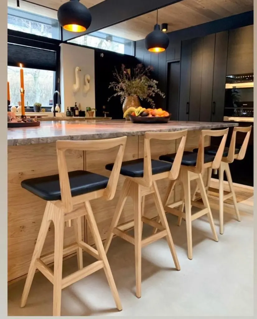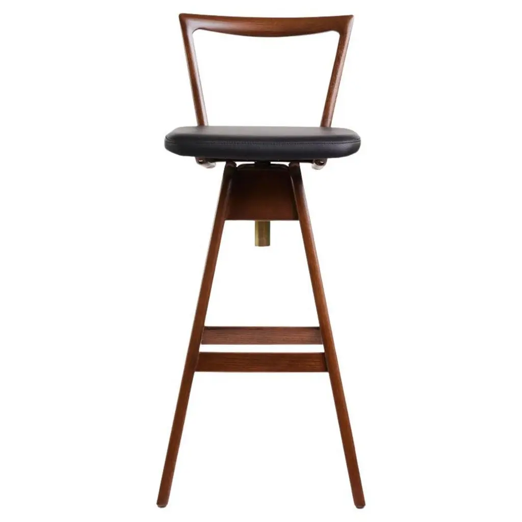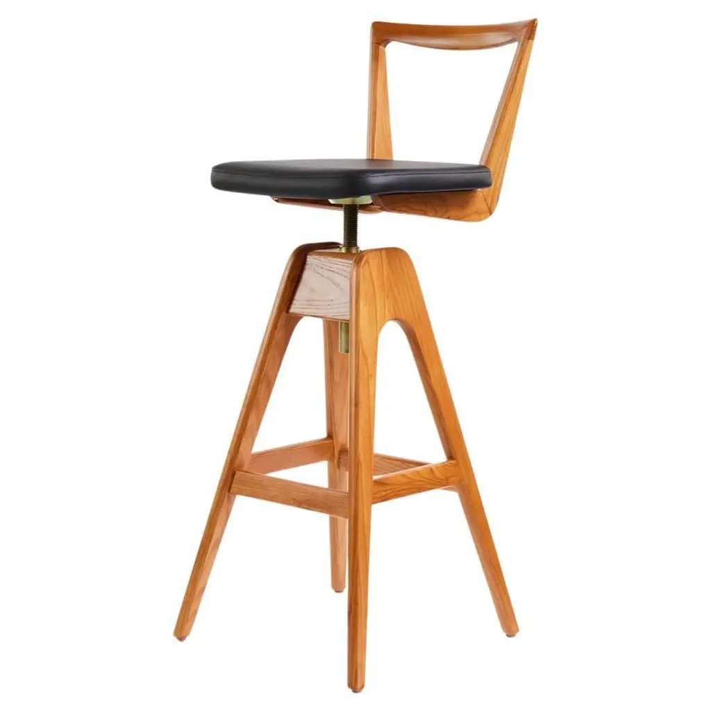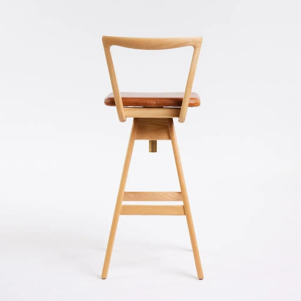 The TH Brown Danish bar stool was designed by Peter Brown and first manufactured from early 1960, and remains an iconic, timeless Australian design masterpiece to this day. The beautifully sculpted timber seat back, angled legs and hand stitched upholstery remain as contemporary as the day they were first designed.These iconic stools are the among the most coveted Australian mid-century pieces ever produced. The original examples have become heirlooms and are seen in many magazines, exhibitions, and design showrooms around the world.Hand finished by expert craftsmen it features solid timber frame, the finest Italian leather and the highest quality materials throughout. All timbers and leathers are ethically sourced.These stools will be a design statement in any contemporary or mid-century themed kitchen, bar, or office. They are individually numbered and certified, offering the purchaser an ideal heirloom piece for future generations.TH Brown remains Australia’s oldest operating furniture brand - established in Adelaide, South Australia in 1911. From the 1950's, TH Brown produced many of the most sought-after mid-Century Furniture pieces ever produced in Australia.The most famous designs were the iconic ranges of Bar Stools, Coffee Tables and Dining Chairs, amongst many others - produced in Adelaide from the mid 1950's through to the 1980's. Our most collected pieces have now been re-issued for the world to enjoy! Every piece is produced under the careful eye of the 3rd generation of TH Brown’s family and each piece is hand finished to the same exacting standards as the original craftsmen.These unmistakable pieces are not replicas and remain the gold-standard of Australian furniture design and manufacture.The Danish Bar StoolThe unique swivel and height adjusting mechanism allows for the seat to adjust to whatever bench height is required – from 63cm to 75cm.SpecificationsFrame - Clear AshLeather optionsBlackOakCalypsoWhiteCustom - please reach out to discussDimensions Height to seat: 63cm - 75cmHeight to back: 83cm - 95cmWidth: 39cmDepth: 39cmSeat W 35cm x D 30cmCustom - we can reduce the leg height if desiredAll customisation carries an additional chargeWe do carry some stock , but this changes daily. Due to increased demand our production timelines are now up to 8 weeks from time of order to dispatch.