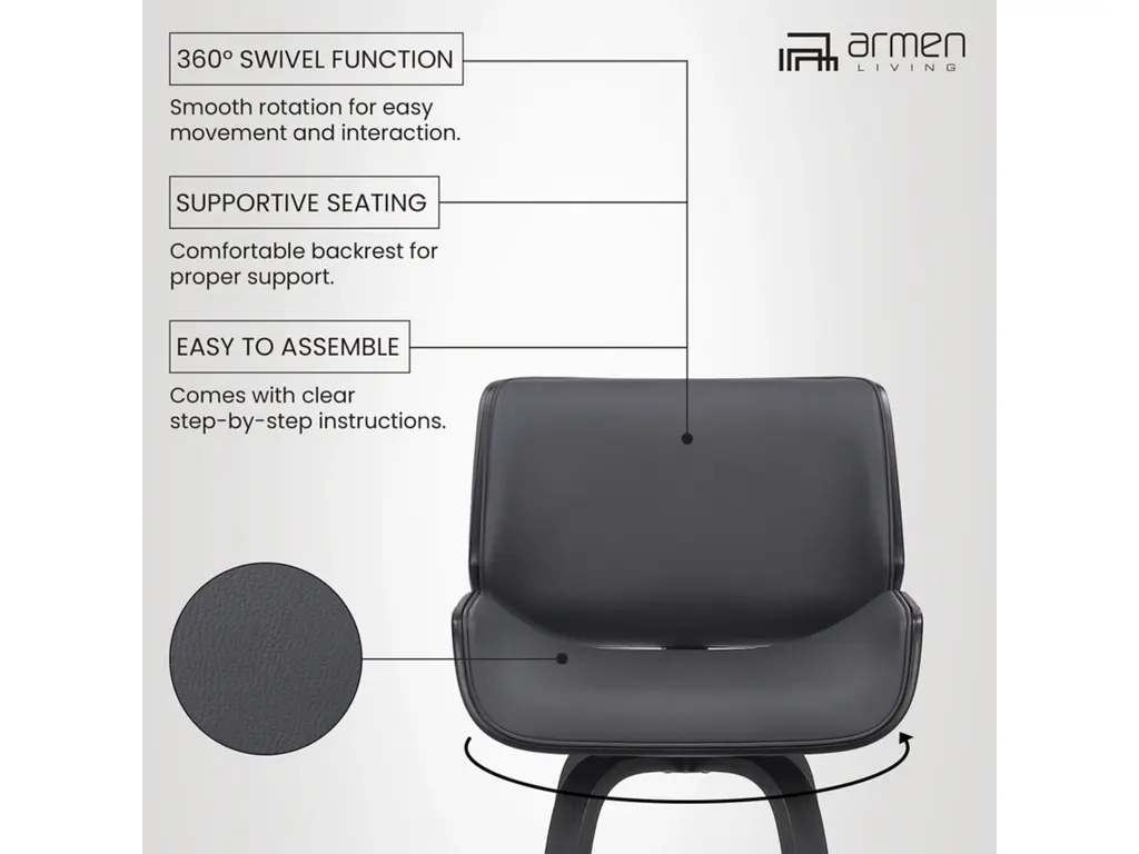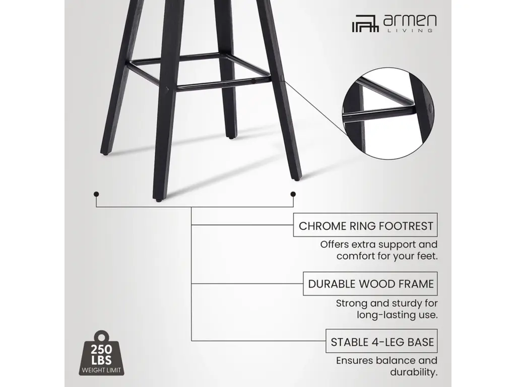 Add some mid-century modern flair to your home with the Armen Living counter stool. Featuring a retro-style silhouette, the Tyler bar stool showcases function, convenience and timeless beauty. The 360-degree swivel functionality gives you the mobility you need when sitting or entertaining and allows you to easily engage with any of your guests regardless of their place in the room. An ideal addition to your kitchen peninsula, island, home bar or pub table, the high-density foam cushion and chrome-tone ring shaped footrest keep you comfortably seated.