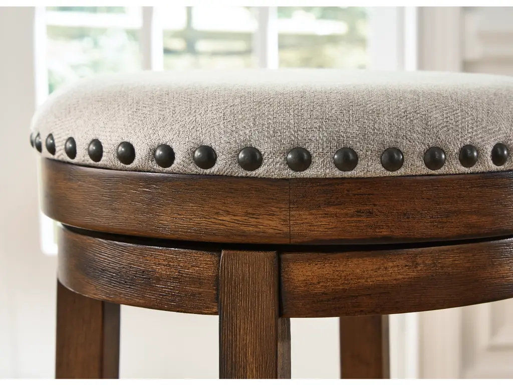 A touch of rustic-industrial style is such a fashion-forward choice, and the Valebeck swivel stool doesn’t disappoint. Its smooth swivel motion adds function, while nailhead trim brings effortless style. A softly upholstered cushion seat in beige keeps things cozy. Set this stool by the kitchen bar for a visually intriguing mix of new and old.