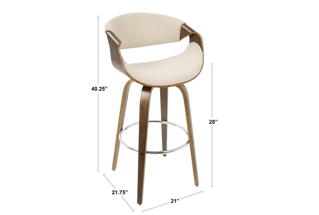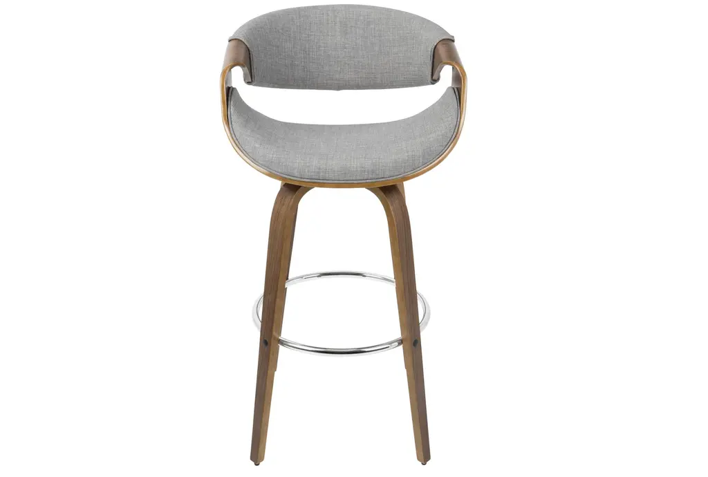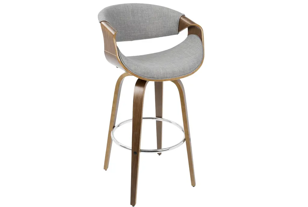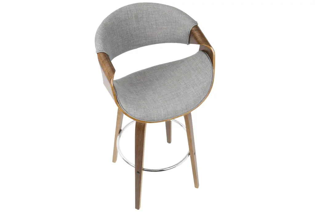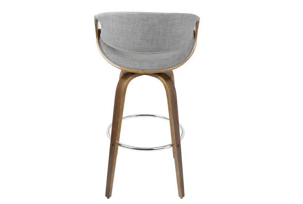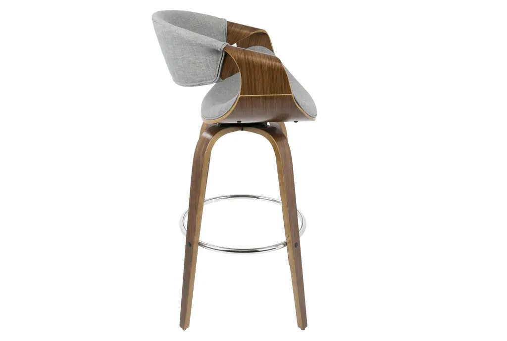 Vini Curve Grey Fabric + Walnut Swivel 30" Barstool Set Of 2 | Bentwood