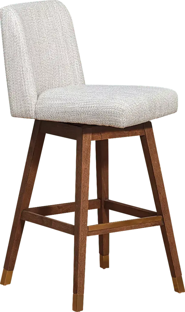 Modern design collides with high quality materials and creates a functional work of art that is the Voidsys II beige barstool. The Voidsys II comes as a welcome addition whether you're furnishing a new place or updating your kitchen or dining space for a fresh new look. Entertaining is a breeze with the swivel mechanism. The 180-degree swivel allows you to swivel either way and the seat always returns to forward facing position when you stand up. The sturdy 4 leg base is constructed from rubberwood. Its dense grain character makes it a stable construction material that is naturally resistant to fungus and bacteria. The long-term durability of polyester makes it an ideal choice of stool upholstery fabric for families with children and pets. The upholstery is water repellent, stain resistant, budget friendly, and less prone to discoloration. Customer assembly is required.