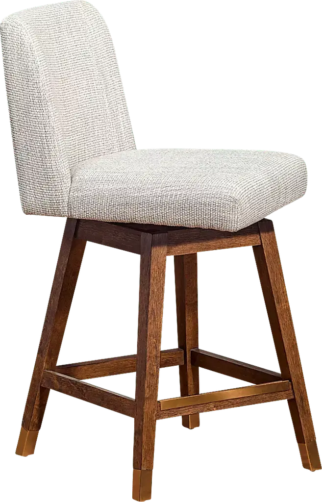 Modern design collides with high quality materials and creates a functional work of art that is the Voidsys II beige counter height stool. The Voidsys II comes as a welcome addition whether you're furnishing a new place or updating your kitchen or dining space for a fresh new look. Entertaining is a breeze with the swivel mechanism. The 180-degree swivel allows you to swivel either way and the seat always returns to forward facing position when you stand up. The sturdy 4 leg base is constructed from rubberwood. Its dense grain character makes it a stable construction material that is naturally resistant to fungus and bacteria. The long-term durability of polyester makes it an ideal choice of stool upholstery fabric for families with children and pets. The upholstery is water repellent, stain resistant, budget friendly, and less prone to discoloration. Customer assembly is required.