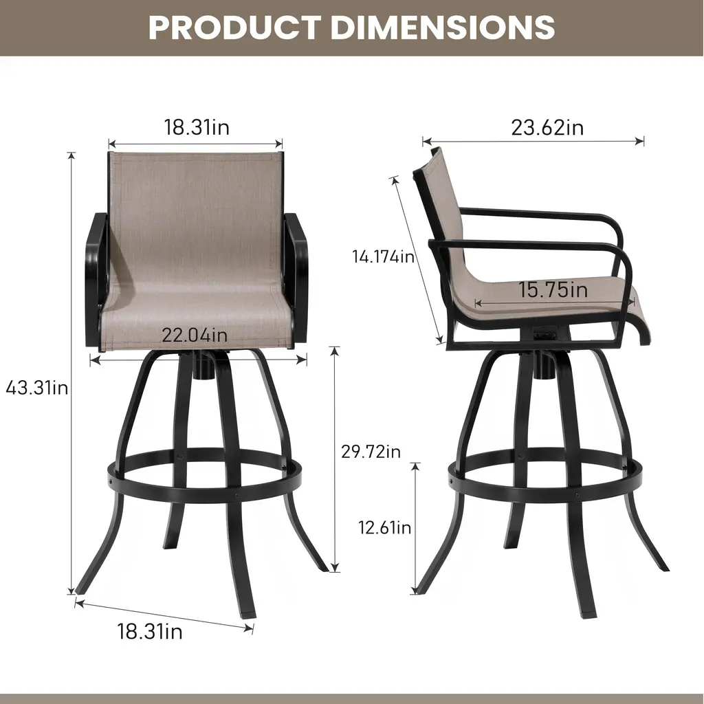 Create a comfortable spot for cocktail hour with these VredHom 2-piece outdoor bar stools. The bar stools are made of breathable textilene sling and sturdy powder-coated aluminum frame. Swivel bar stools make the chair 360 degree rotatable. Easy assembly required. Enjoy Your Life! Features: Item Specifications:
