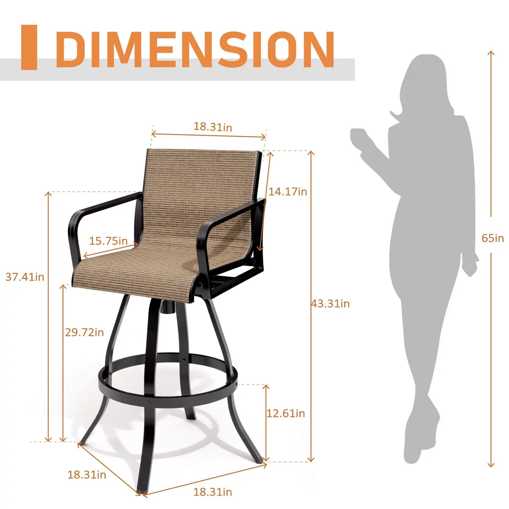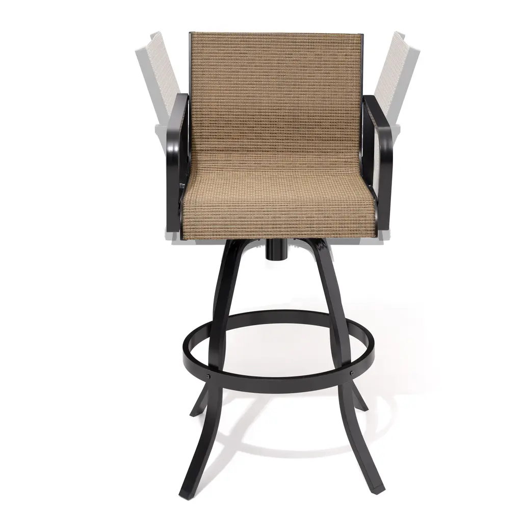 Create a comfortable spot for cocktail hour with these VredHom 2-piece outdoor bar stools. The bar stools are made of breathable textilene sling and sturdy powder-coated aluminum frame. Swivel bar stools make the chair 360 degree rotatable. Easy assembly required. Enjoy Your Life! Features: Item Specifications: