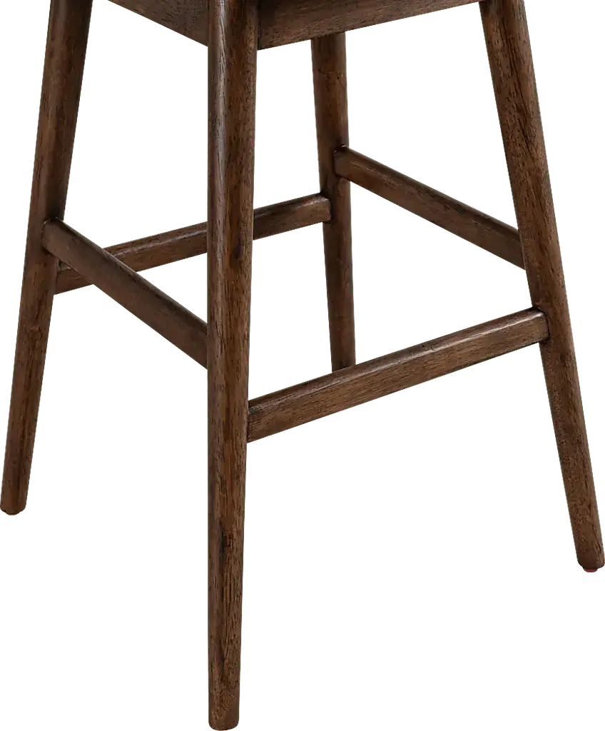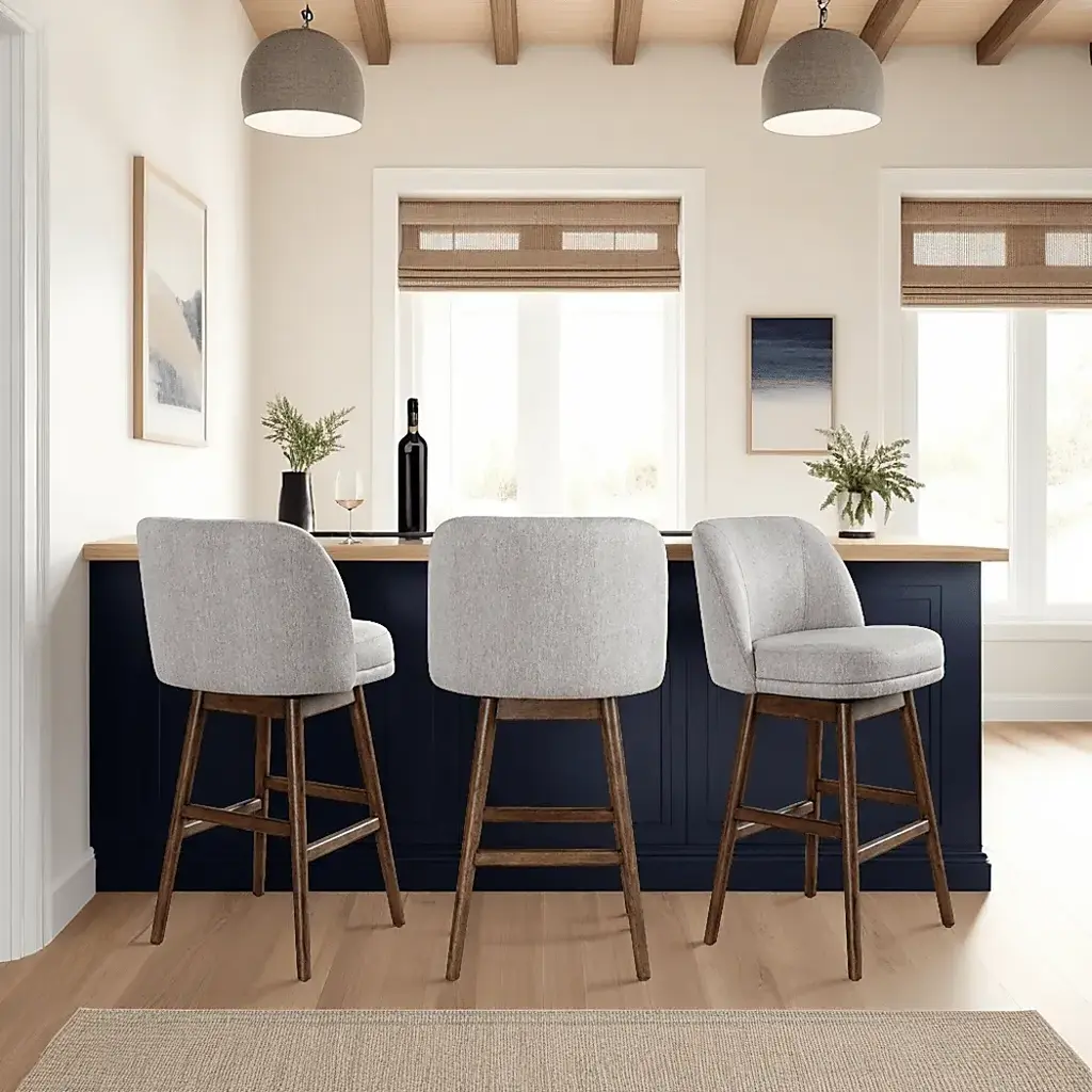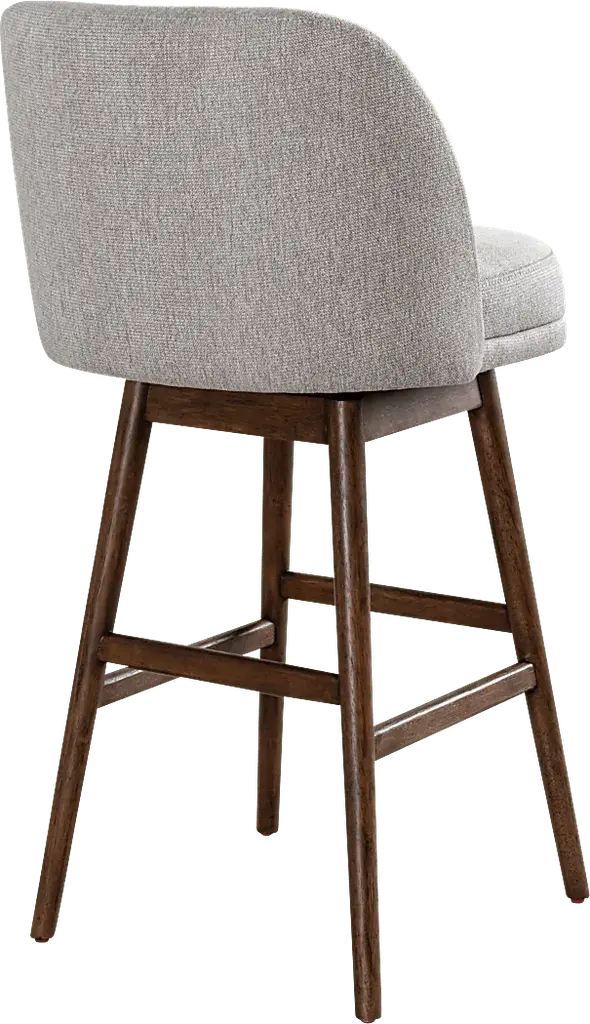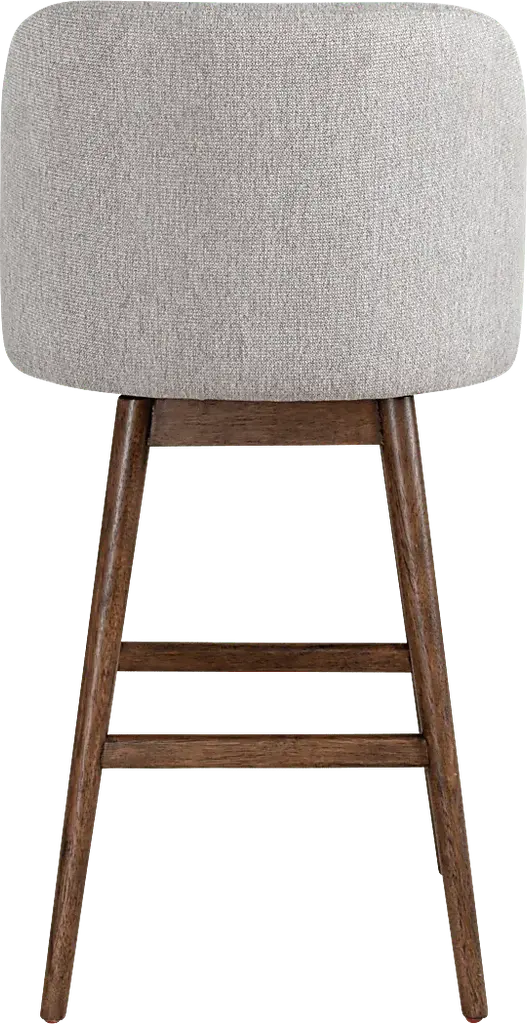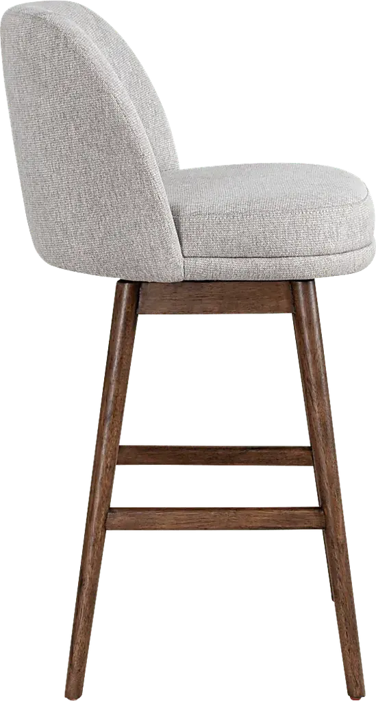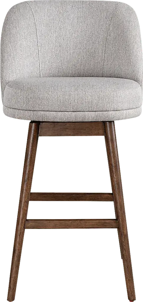 The Wolfphone II dark brown and taupe barstool brings a refined blend of style and comfort to your kitchen island, counter, or home bar. Featuring a low-back design with a rectangular upholstered seat and sleek curves, this modern transitional stool offers an elegant seating solution. Upholstered in durable polyester fabric, the soft fiber-wrapped foam cushioning ensures superior comfort for everyday use or entertaining guests. Its 360-degree swivel feature allows for smooth movement. The sturdy rubberwood frame, enhanced with a brushed finish, provides lasting durability while adding a sophisticated touch to the overall design. The Wolfphone also features plastic glides to protect your floors, combining practicality with style. Assembly is quick and simple, requiring only a screwdriver. Customer assembly is required.