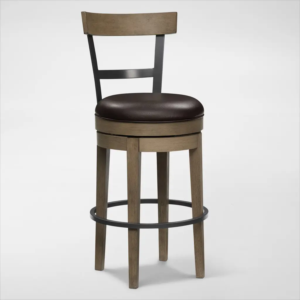 Style and function come together in harmony with the Wonderrover I brown barstool. The Wonderrover I frees you of any visual constriction with the 360-degree swivel motion, helping to keep you engaged with your friends and family at gatherings. The upholstered low back is rounded, providing the user with exceptional ergonomic support. The padded bar seat and back are constructed from high-density foam and wrapped in soft faux leather upholstery that will keep you comfortably seated for hours on end. The strong metal frame that's further accented by the inclusion of a round footrest. The legs are tipped with floor protectors, assuring that the stool will not slip on or scratch hardwood or tile floors, ensuring a durable stool that will last for many years to come. Customer assembly is required.