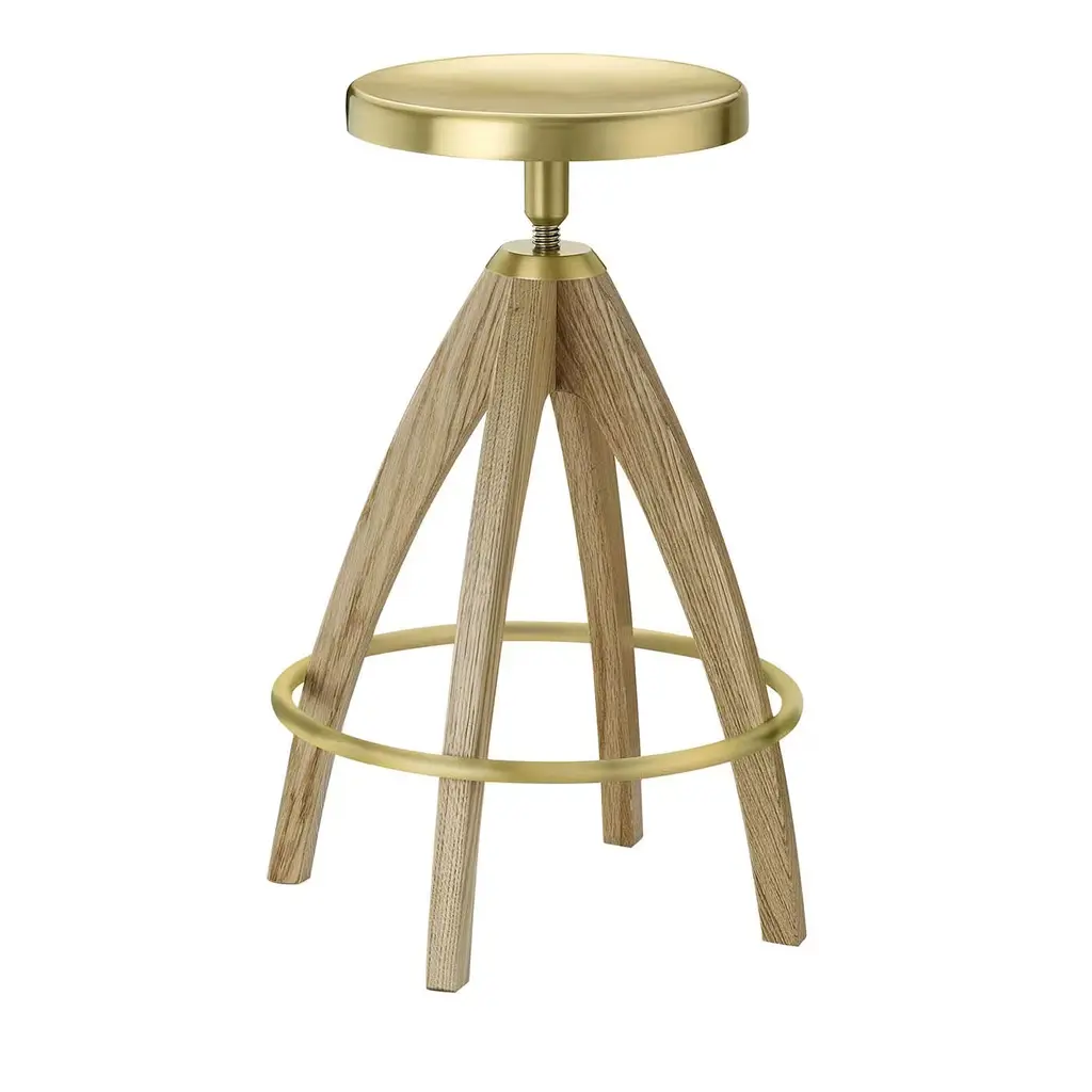 Wyndham 25 Inch Natural Wax And Vintage Brass Swivel Counter Stool
