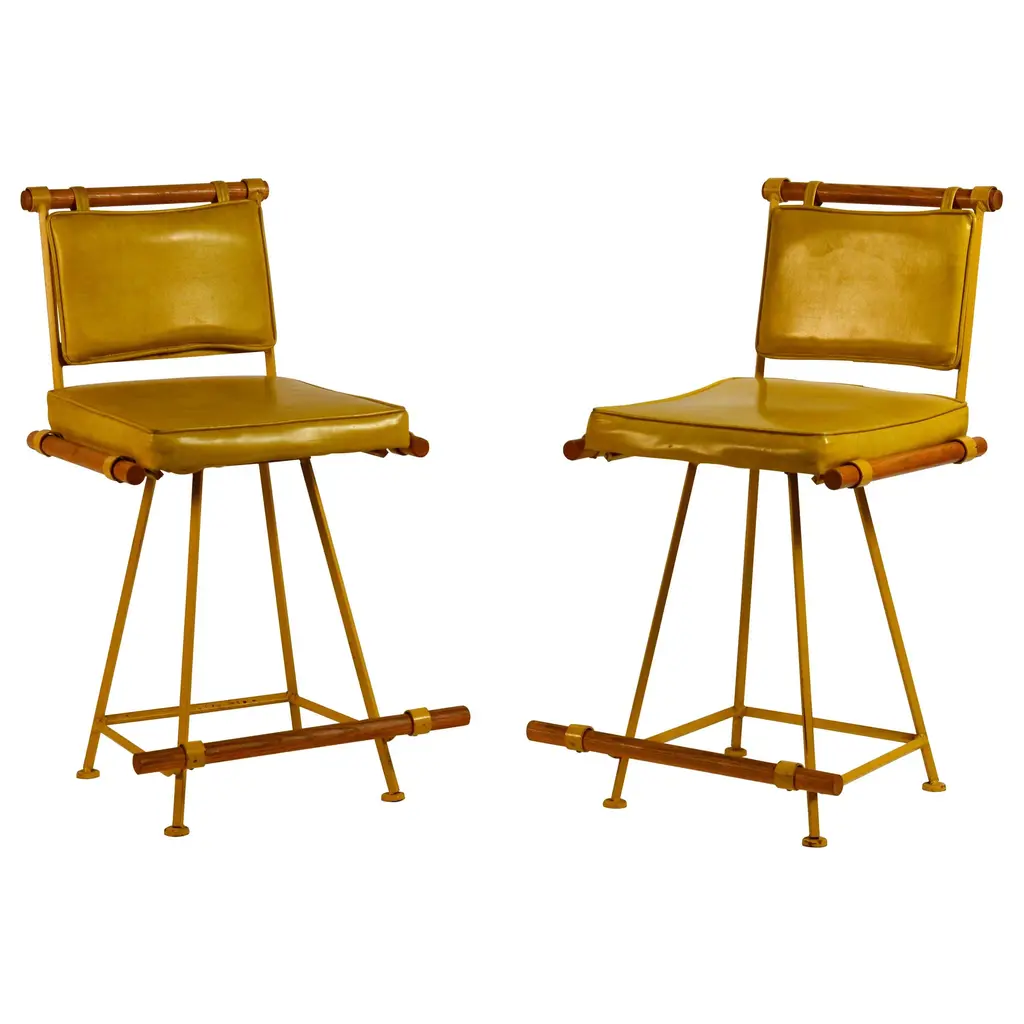 Yellow 'Los Feliz' Swiveling Counter Stools By Design Frères - A Pair