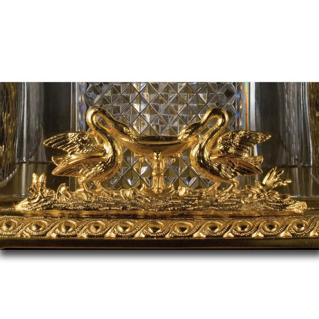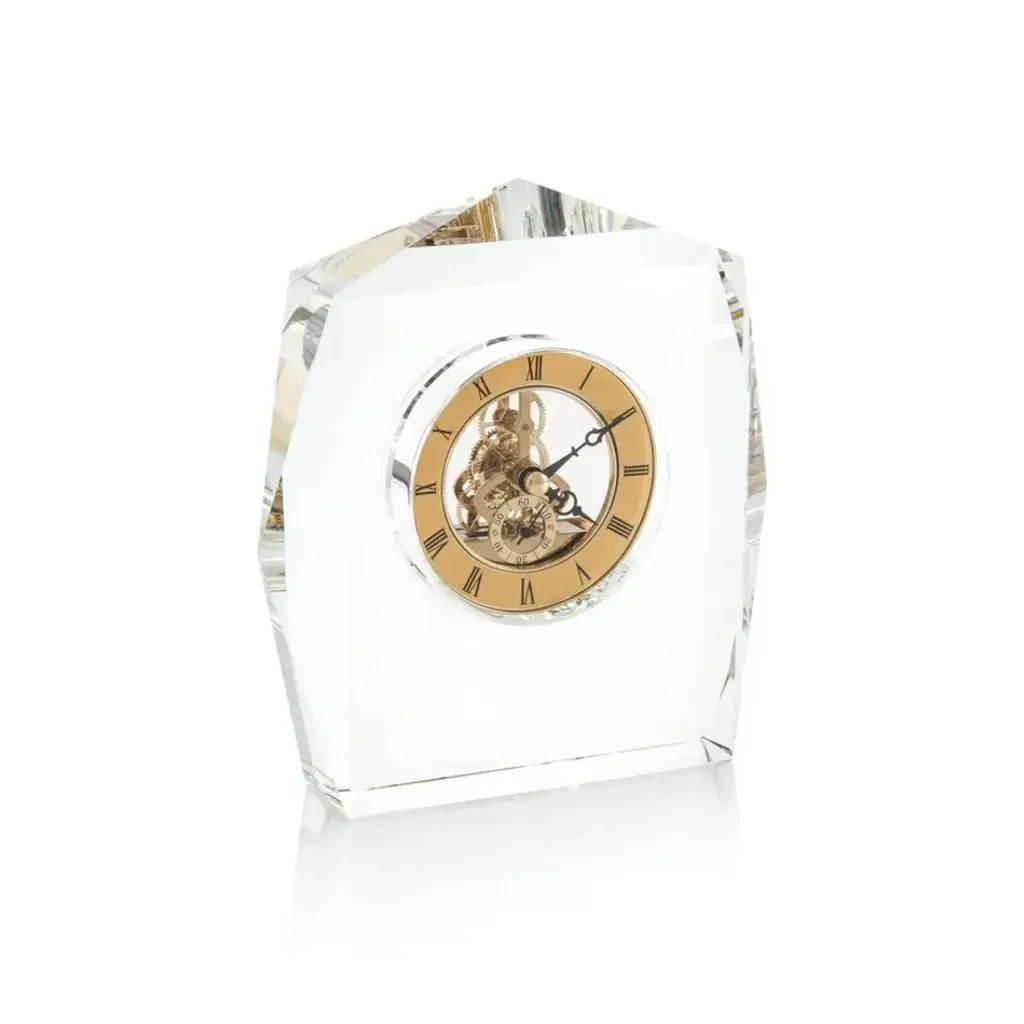 21st Century, Hand Carved Clear Crystal And Golden Bronze Clock