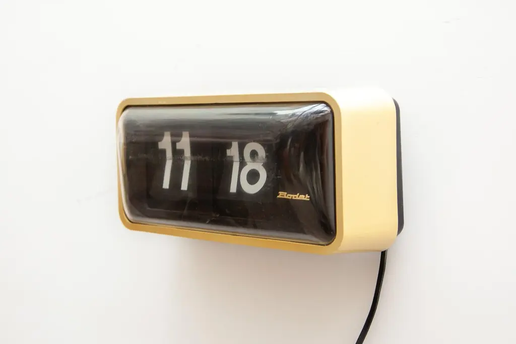 Timeless Bodet black and white flip-flap station clock designed by the company that has been equipping French and Belgium stations for their big clocks for several decades. They inform travelers of the time that is running! This pretty specimen from the 1970s and 80s will ensure your punctuality while offering a beautiful Industrial and modern look to your interior decor.The flip-flap clock is vintage and dates from the 1970sFormerly a slave clock, now fitted with a pulse print generator. Imagine how a normal flip clock works: There's a clock movement inside, powered by batteries or the mains, and once a minute it electrically releases a catch that allows the next digit to flip into view.Your slave clocks work like that, but with one difference: There's no clock movement inside; there's only the display with its flip mechanism. The slave clocks depend on an EXTERNAL clock movement -- a "master clock" -- to generate the electric Signal that advances the clock display.
