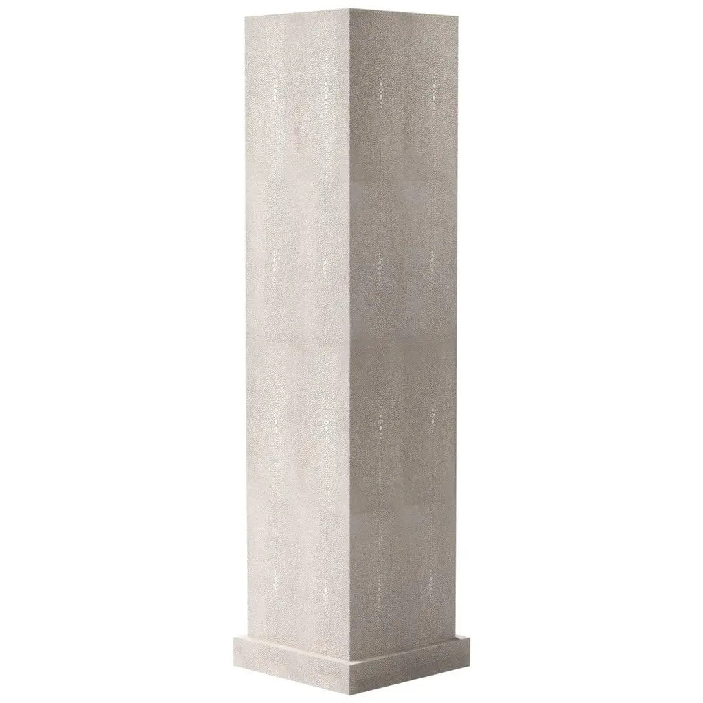 Inspired by Ancient Egyptian architecture, this obelisk-shaped watch will make a singular and refined addition to any decor. Part of the Galucharme Collection by Nino Basso, it is fashioned of polished nickeled brass, almost entirely upholstered in shiny gray Shagreen leather, particularly used in the 20s and 30s to enrich refined objects and furniture. Practical and elegant, it comes in an elegant black box (12x29xh.6 cm).