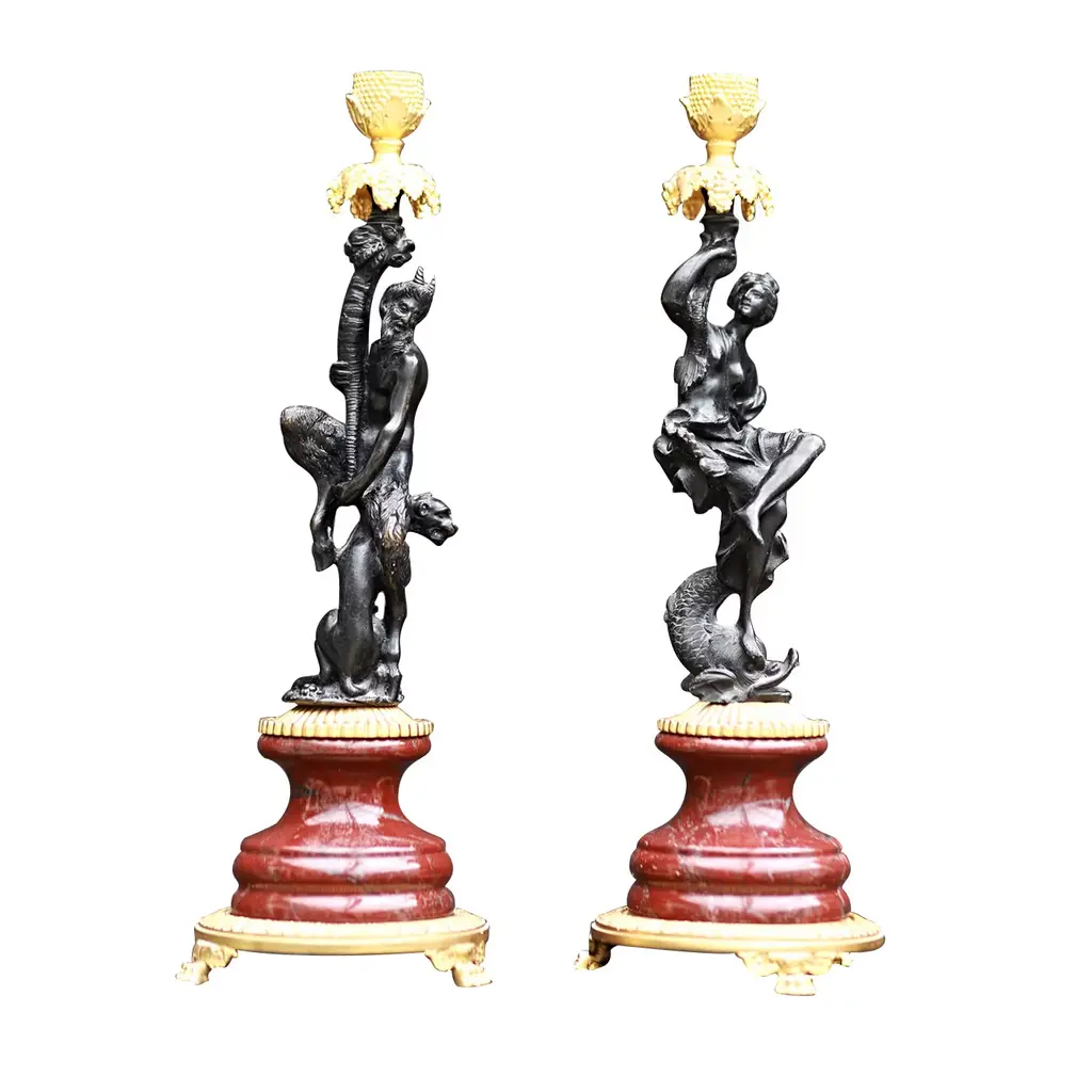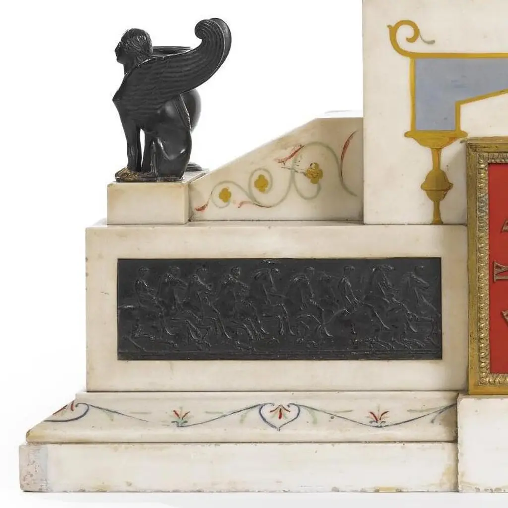 Large 19th Century Neoclassical Figural Bronze And Marble Mantle Clock