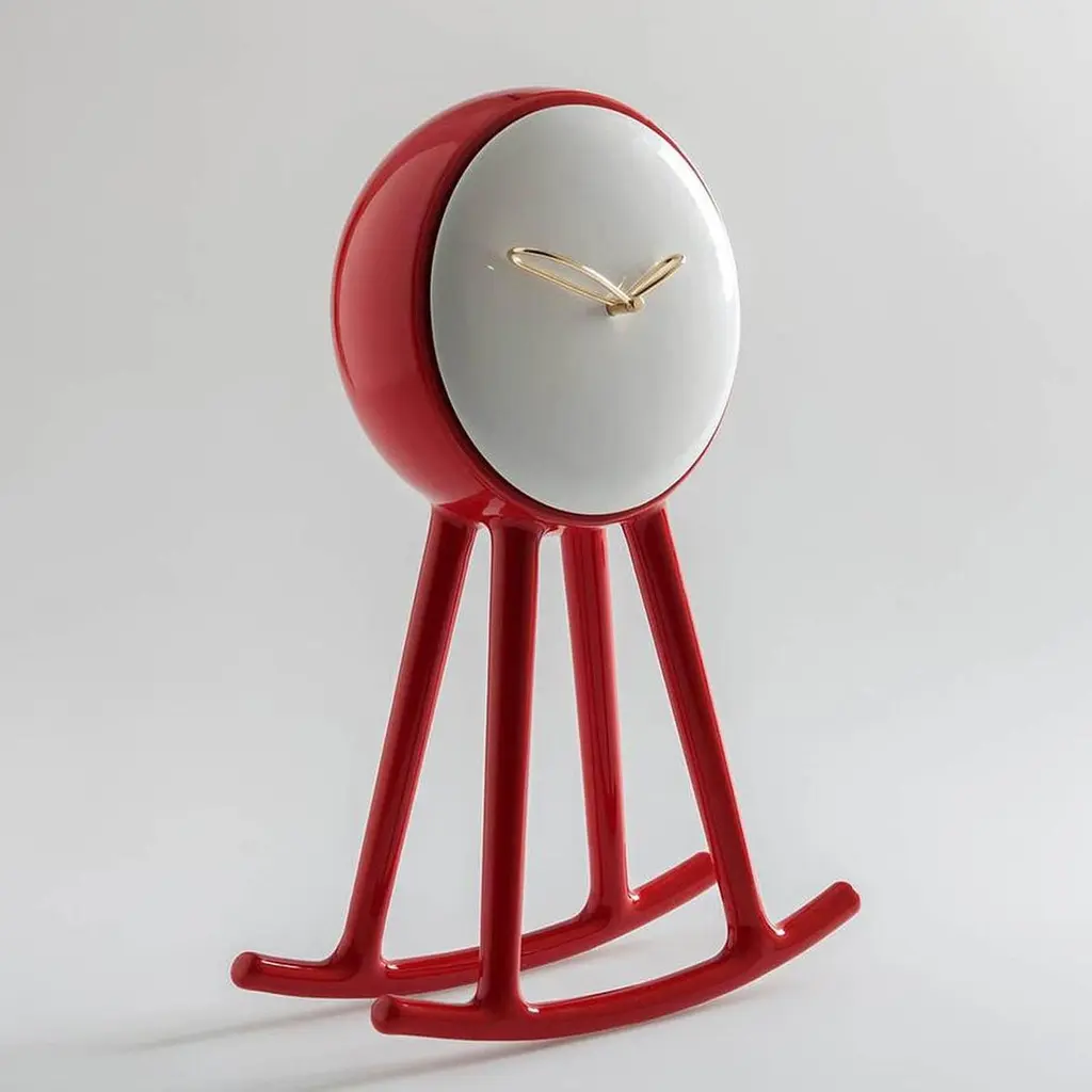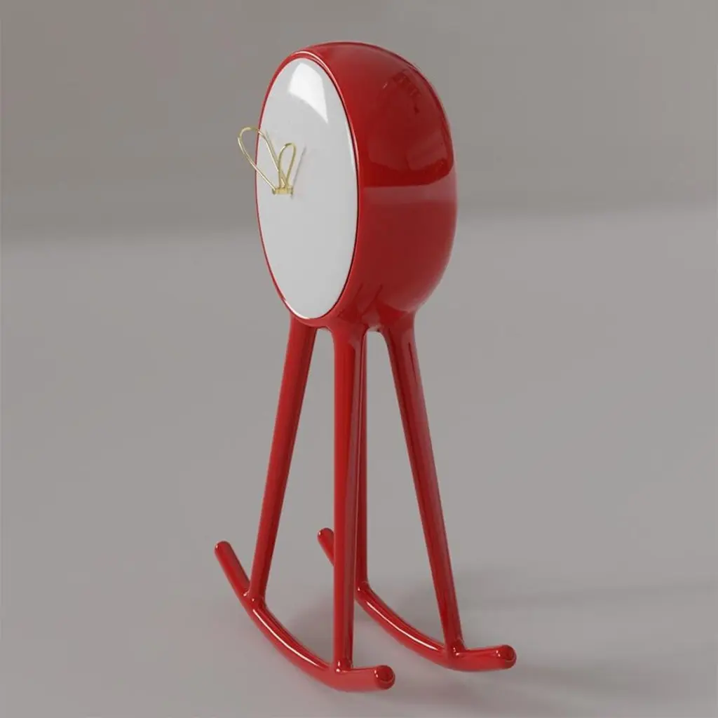 Clock Pendule Red with structure in ceramic in glazed finish and with clear glass.