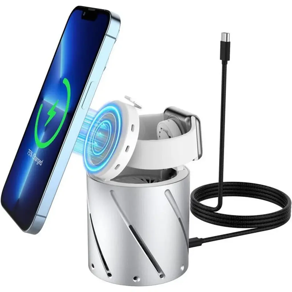 Power Stand is a compact and stylish wireless charging alarm clock. Place your phone on the stand and your Qi-compatible mobile devices will wirelessly charge. You can also conveniently charge your smartphone or other USB compatible devices with the USB charger port. The clock display has dimmer controls and snooze function to round out features. This clock is, electrically, operated (the battery backup does not power the clock). The battery back-up is used to store the time and alarm settings, if power is interrupted.