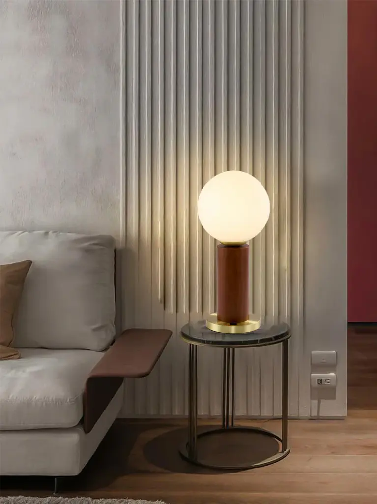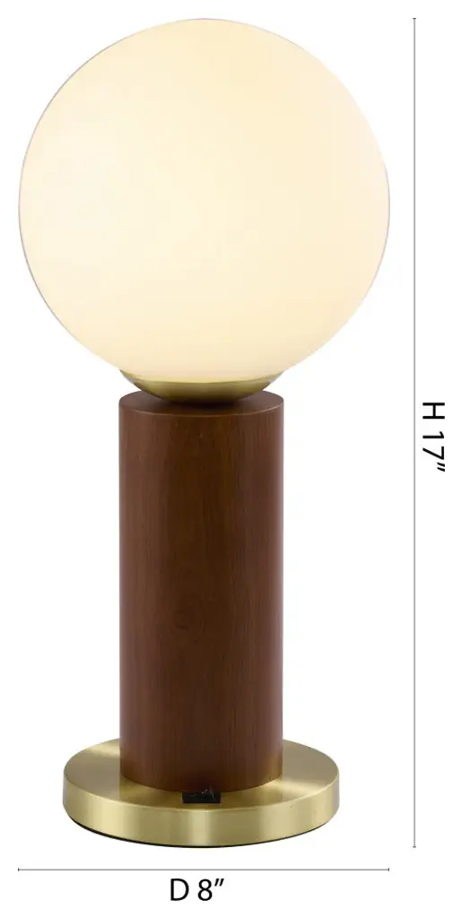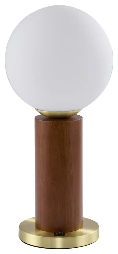 This table lamp is a special piece of decor to make your room warm and welcoming. The base of this table lamp is made out of metal and wood in satin brass and dark oak finish, and it comes with a white frost glass shade. The height is in 17 inch. It is perfect to be used in living room, bedroom, reading room, and office.Material: Wood, Metal, GlassNumber Of Bulb: 1Bulb Type: E26Bulbs Included: NoWattage: 60WUL/cUL/CSA Listed
