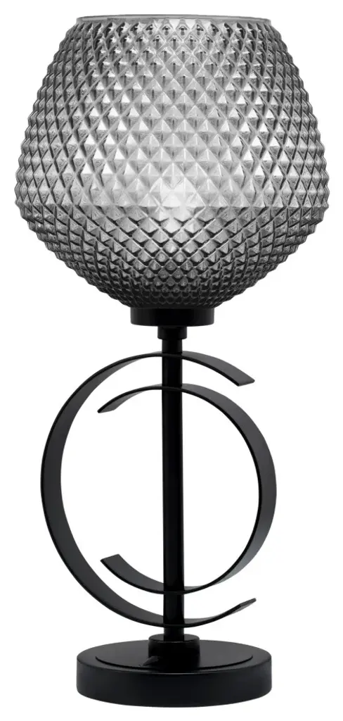 1-Light Table Lamp, Matte Black Finish, 9" Smoke Textured Glass