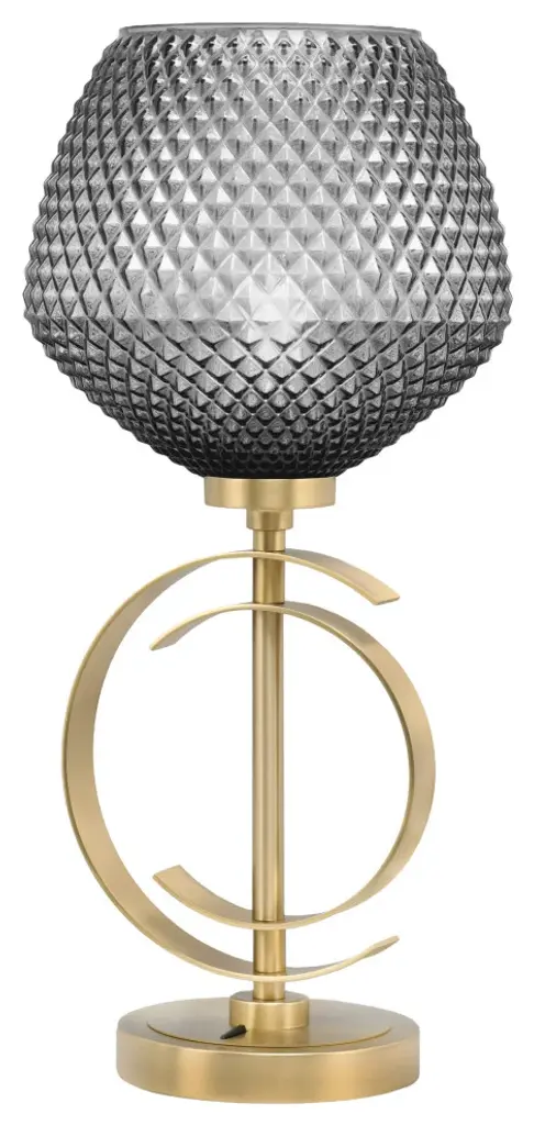 1-Light Table Lamp, New Age Brass Finish, 9" Smoke Textured Glass