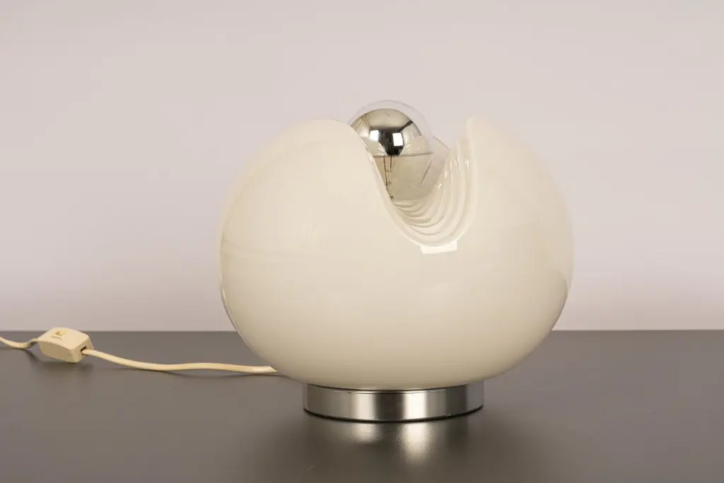 A special round biomorphic Opal glass Table light designed by Koch & Lowy for Peill & Putzler, manufactured in Germany, circa 1970s.Sockets: One x E27 standard bulb. (100 W max).-Light bulbs are not included. It is possible to install this fixture in all countries (US, UK, Europe, Asia, Australia)This light and the other models of this pendant lamp (different sizes) won the iF Design Award in 1975.The listed price is for one item.2 items are availableInformation about Peill & Putzler:Peill + Putzler: Glashüttenwerk Peill und Sohn was founded in 1903 in Düren, a small town in West Germany. Peill merged with Putzler (founded in 1869) in 1947 as a glass works and lighting company and became - Peill & Putzler Glashüttenwerke -.The company always worked with important designers as Wilhelm Wagenfeld, William Brown, Helmut Demary, Aloys Ferdinand Gangkofner, Horst Tüselmann and many others.