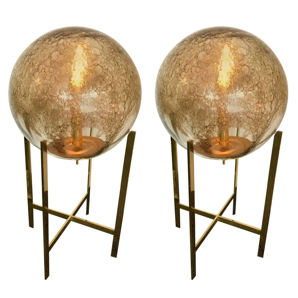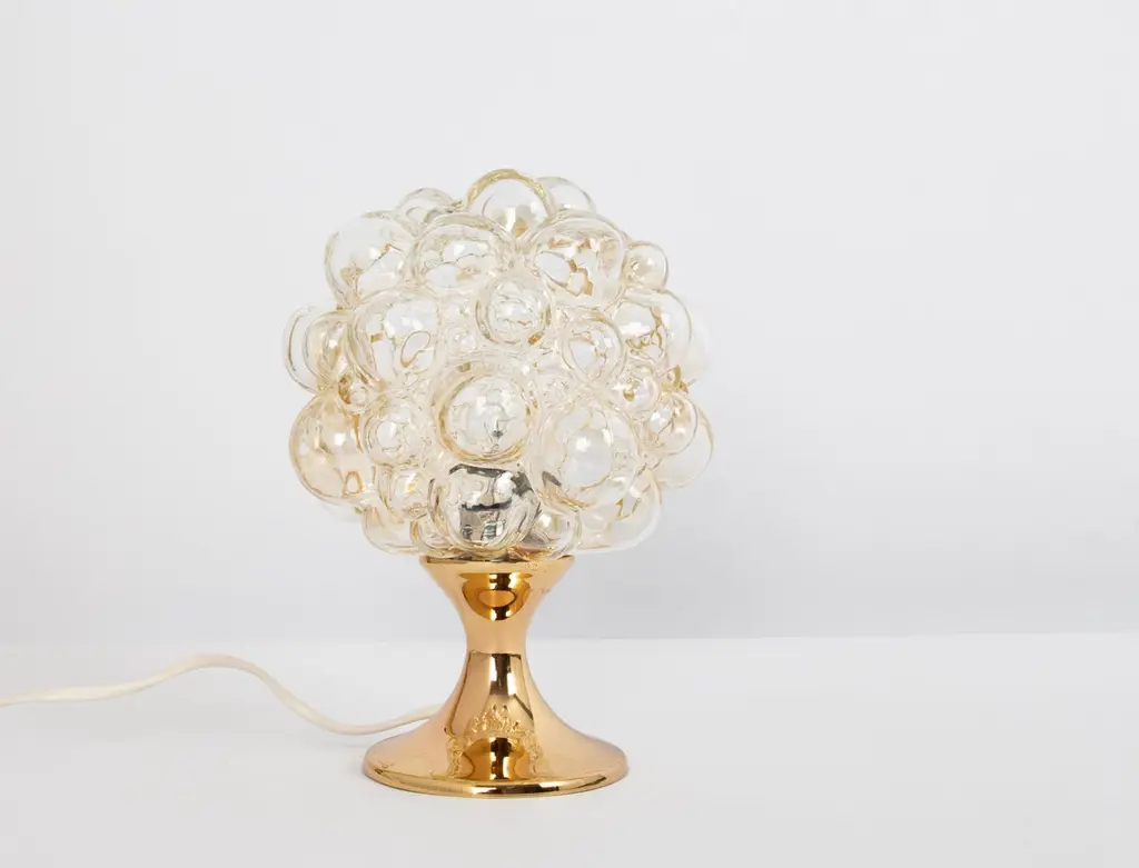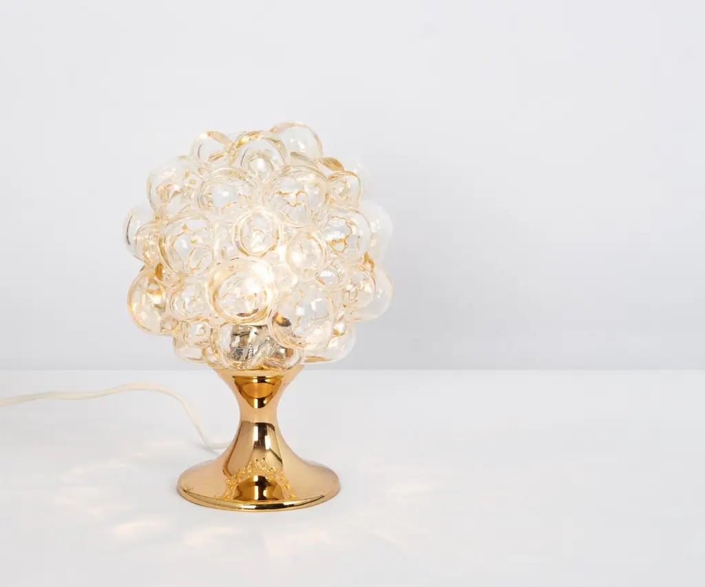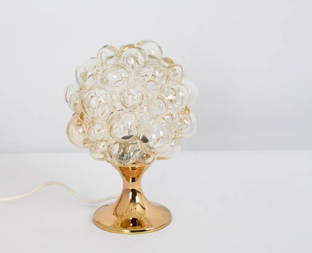 One of six amber bubble glass table lights made in Germany.Very good condition. Cleaned, well-wired and ready to use. Wonderful light effect.Each lamp requires 1 x E14 small bulbs with 40W max each.Light bulbs are not included. It is possible to install this fixture in all countries (US, UK, Europe, Asia, Australia,..)Please note that the listed price is for one Table light. 6 lamps are available.
